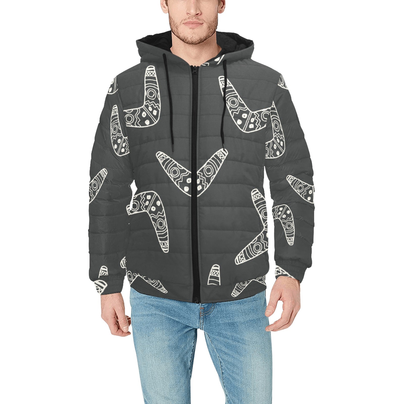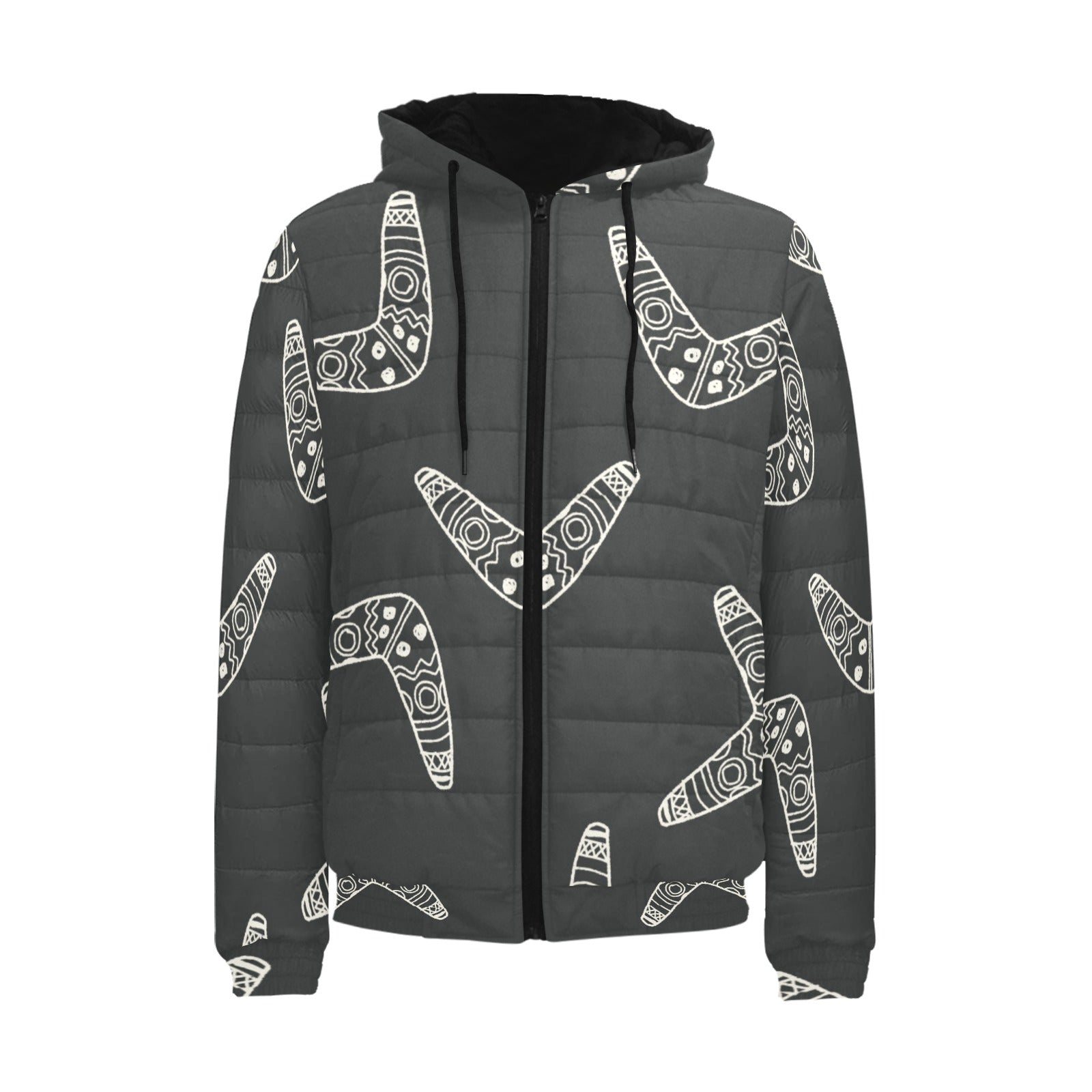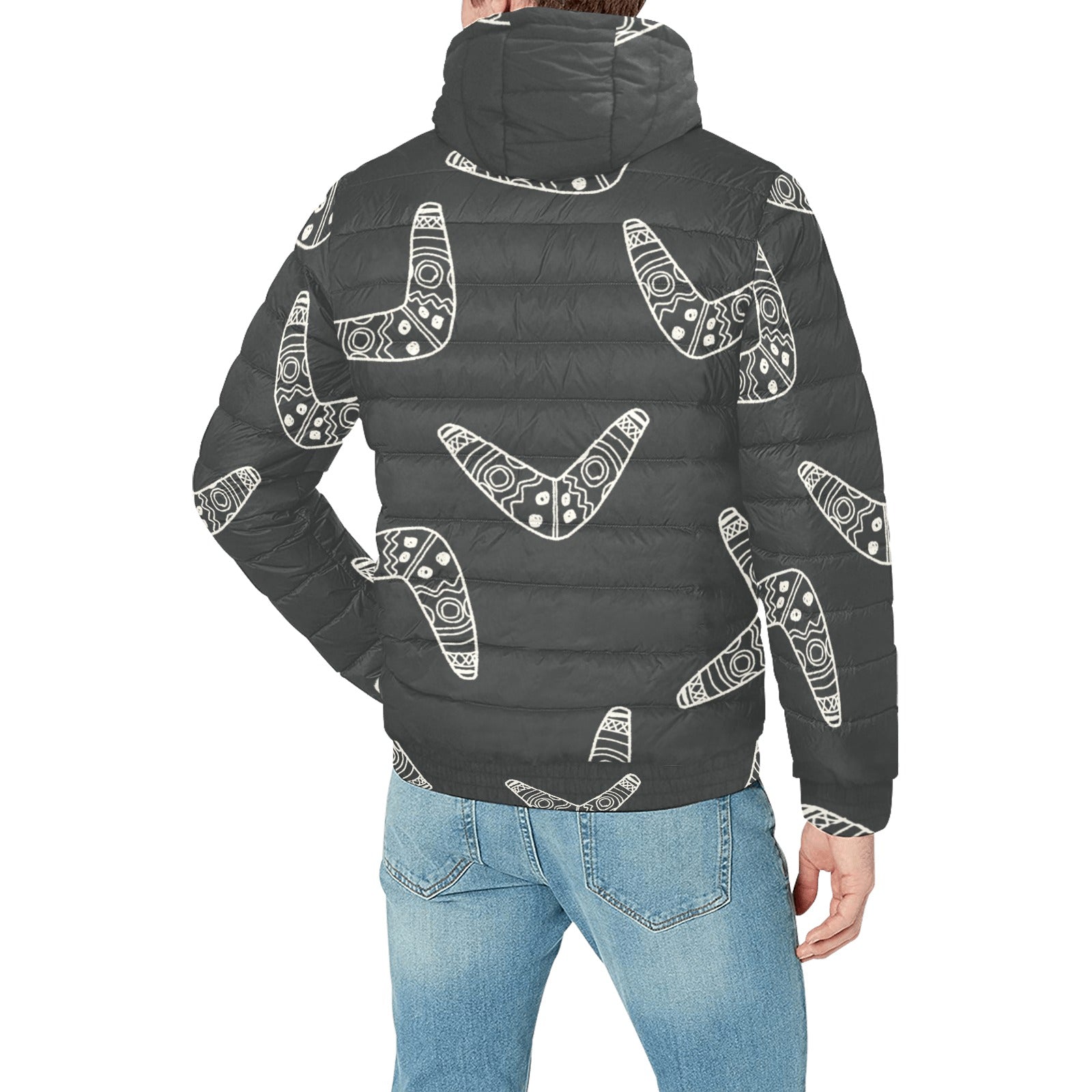 Hand drawn boomerang Australian aboriginal ornamen Men's Padded Hooded Jacket