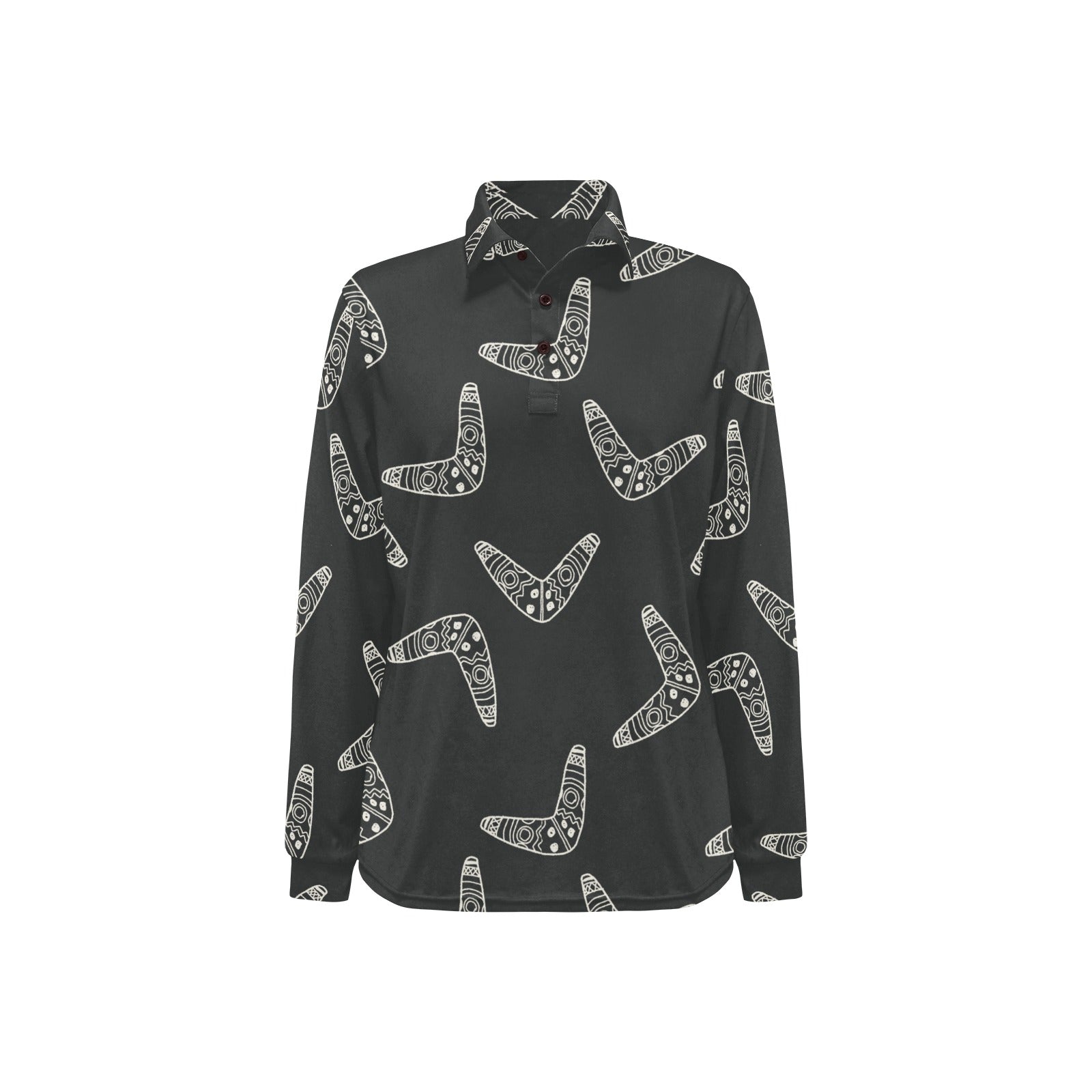 Hand drawn boomerang Australian aboriginal ornamen Women's Long Sleeve Polo Shirt