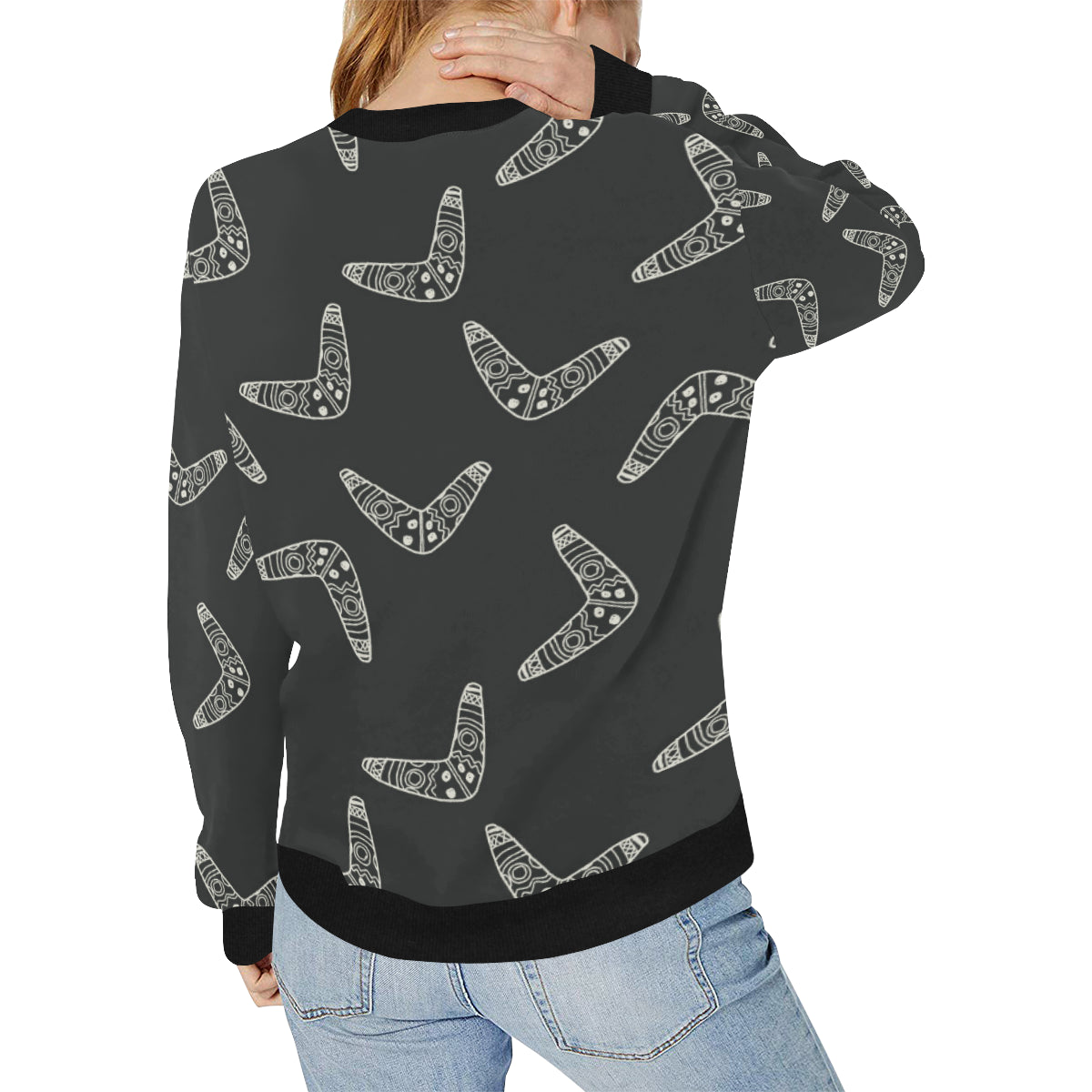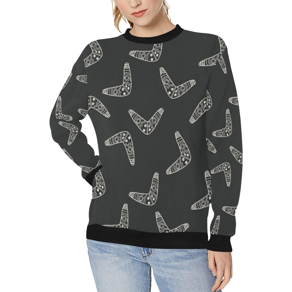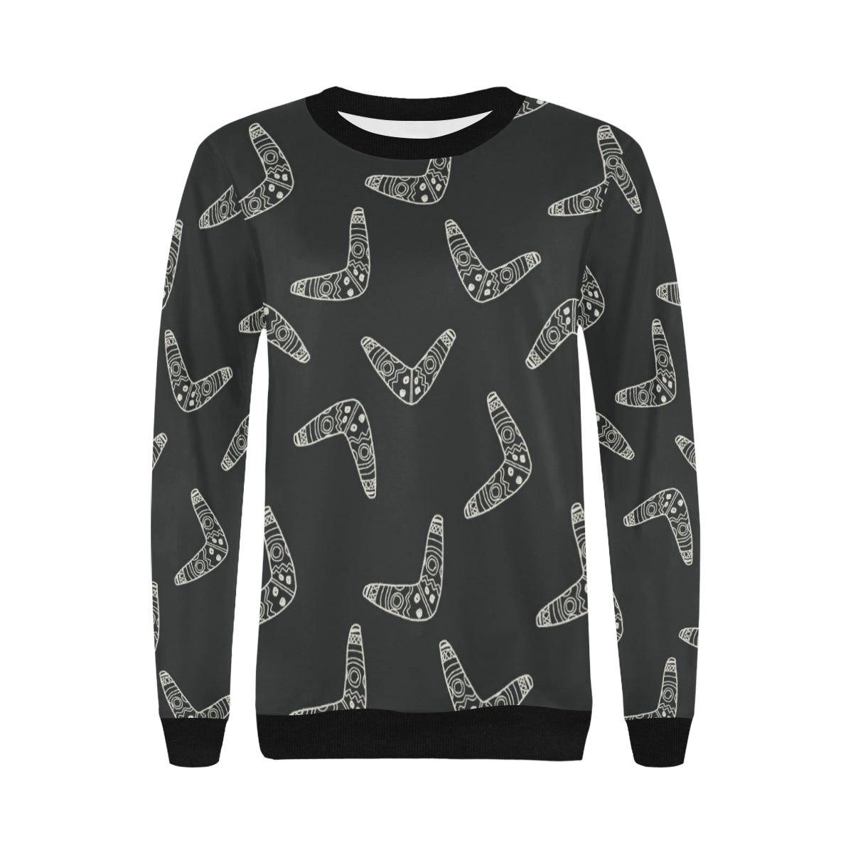 Hand drawn boomerang Australian aboriginal ornamen Women's Crew Neck Sweatshirt