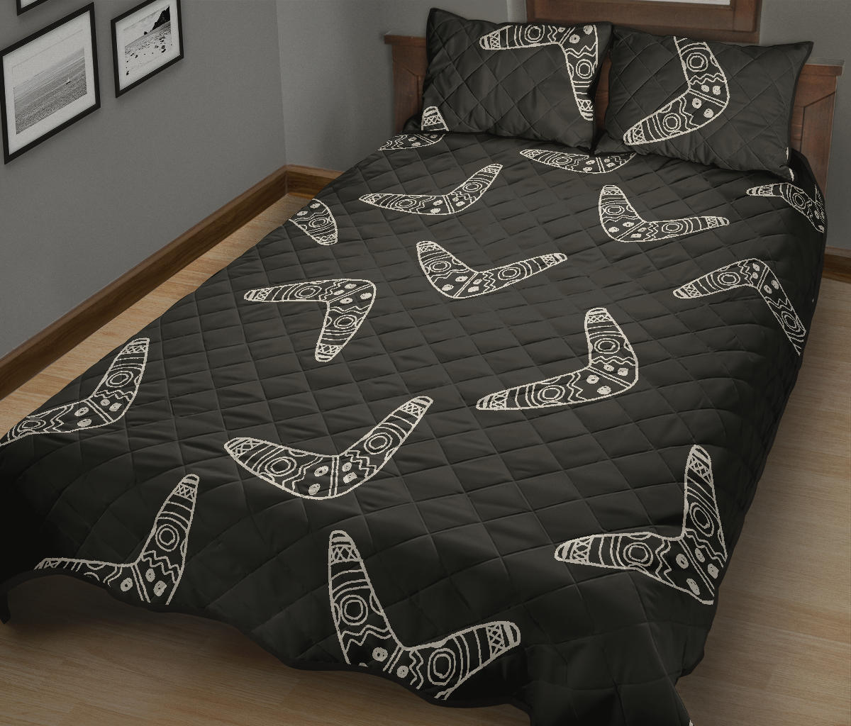 Hand drawn boomerang Australian aboriginal ornament Quilt Bed Set