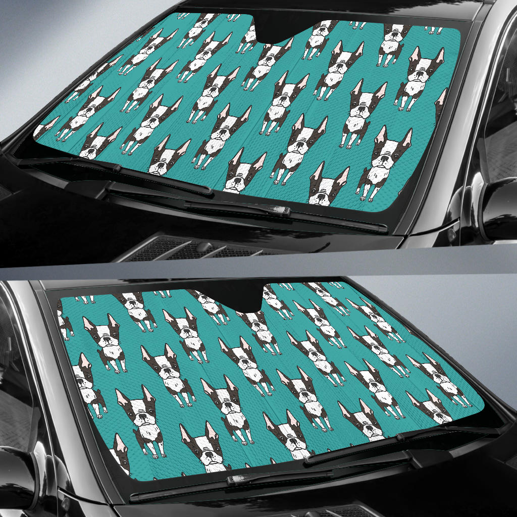 Hand Drawn Boston Terrier Dog Pattern Car Sun Shade