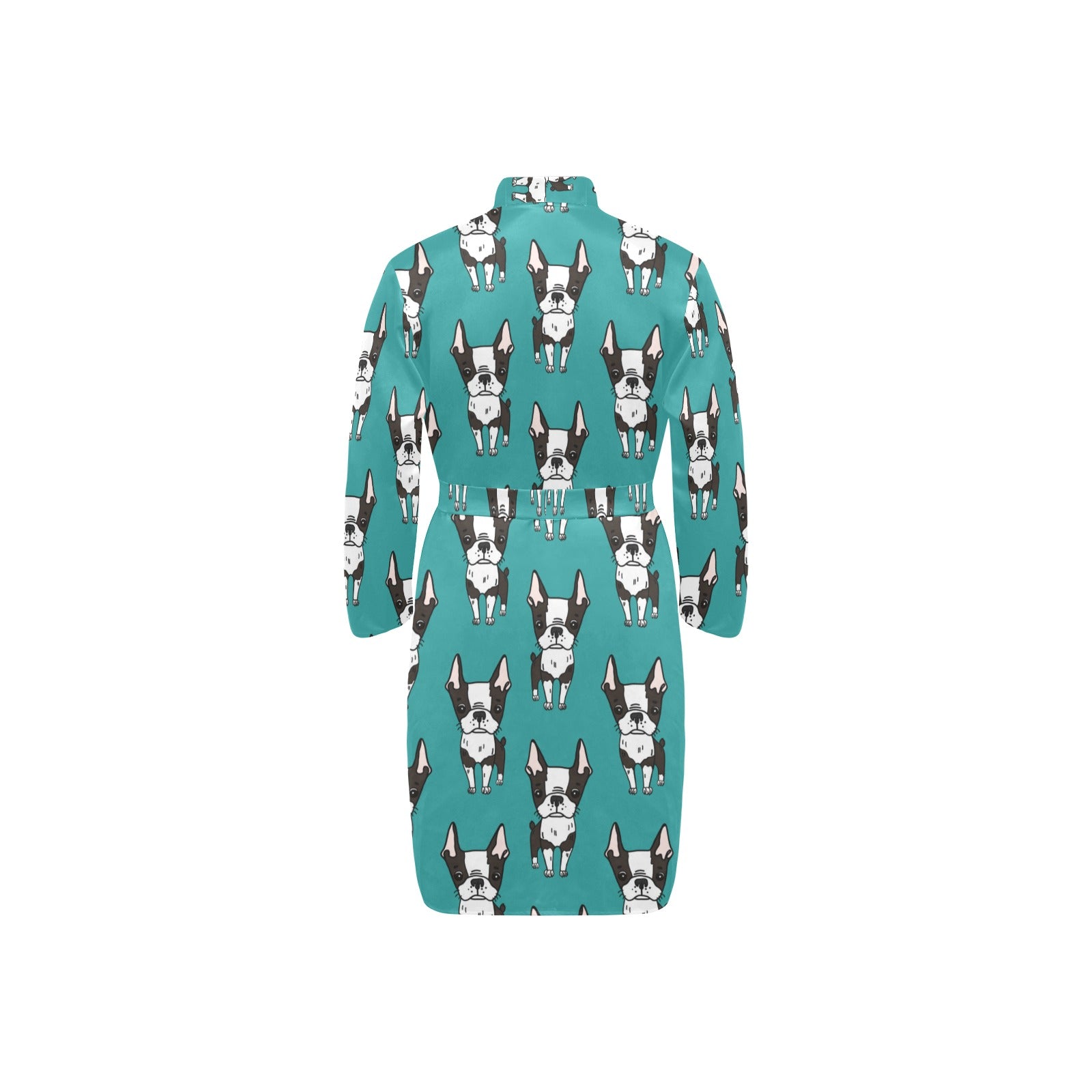 Hand drawn boston terrier dog pattern Men's Long Sleeve Belted Night Robe