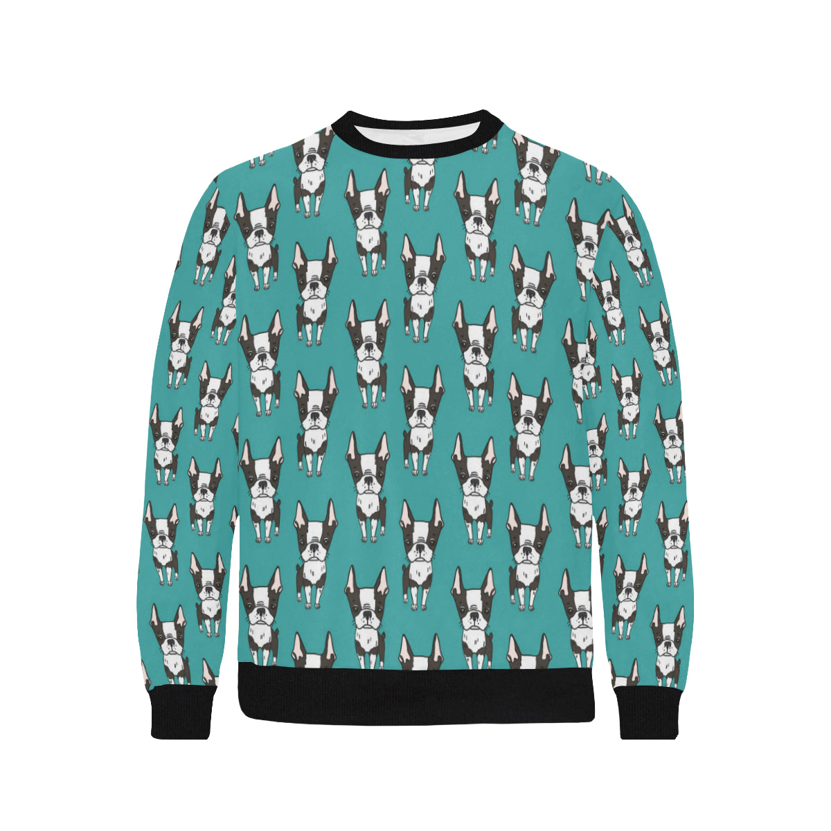 Hand drawn boston terrier dog pattern Men's Crew Neck Sweatshirt is a uniqued design and limited item. It made to order, hand printed, and sewn with love in our factory.