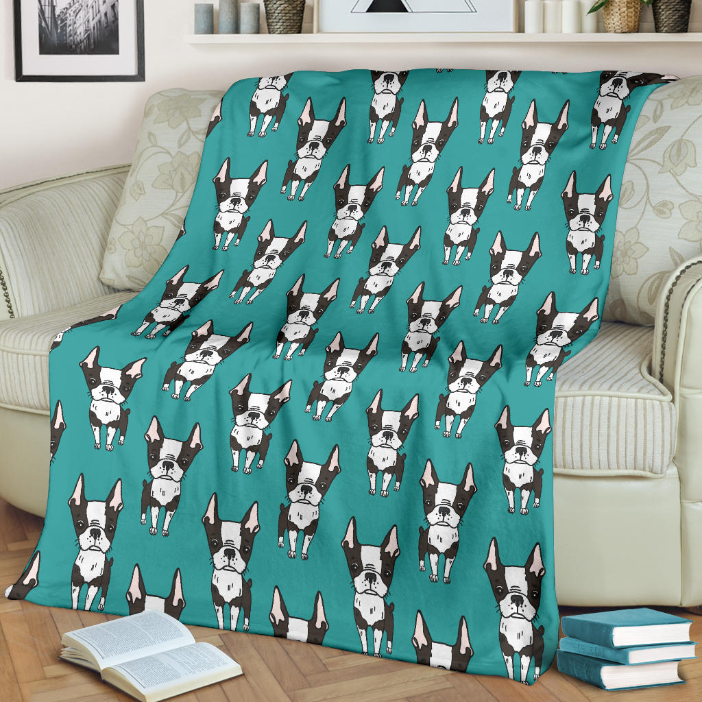 Hand drawn boston terrier dog pattern Premium Blanket is a uniqued design and limited item. It made to order, hand printed, and sewn with love in our factory.