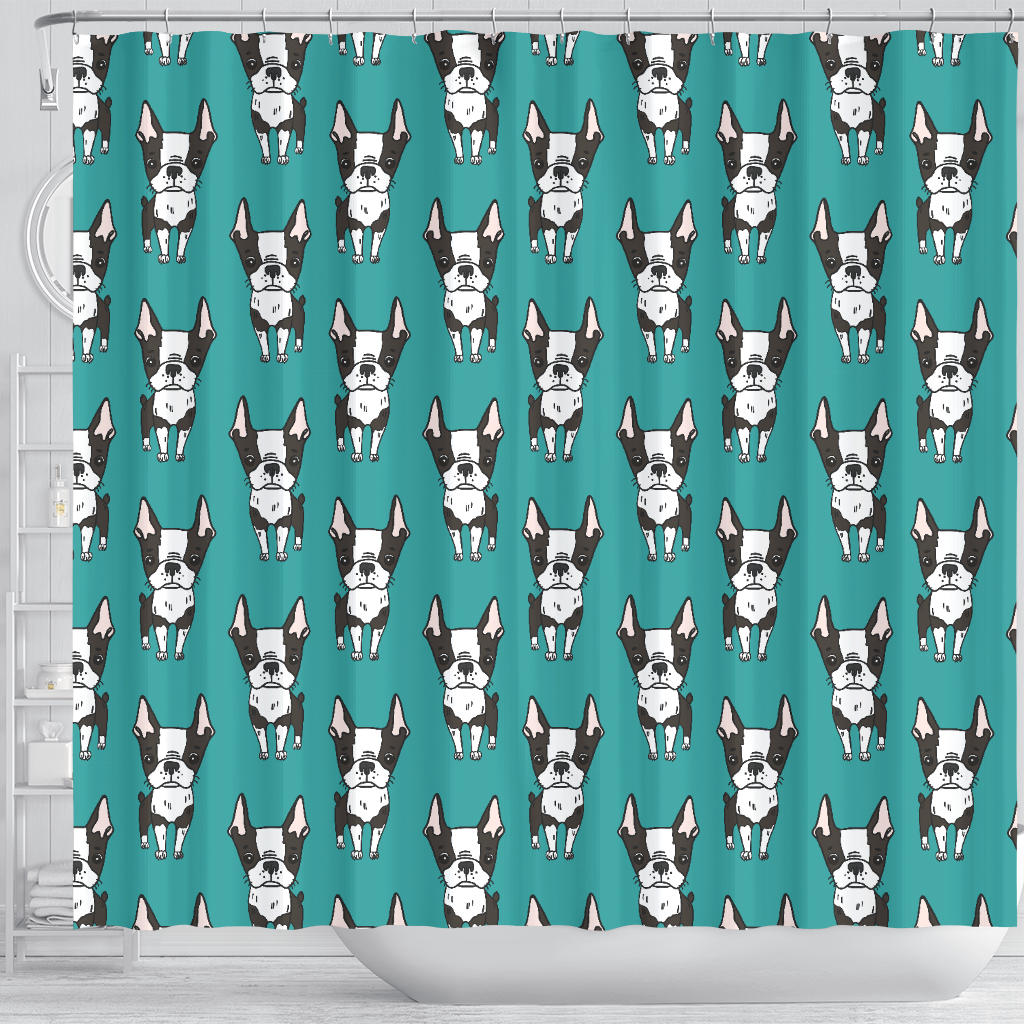 Hand Drawn Boston Terrier Dog Pattern Shower Curtain Fulfilled In US