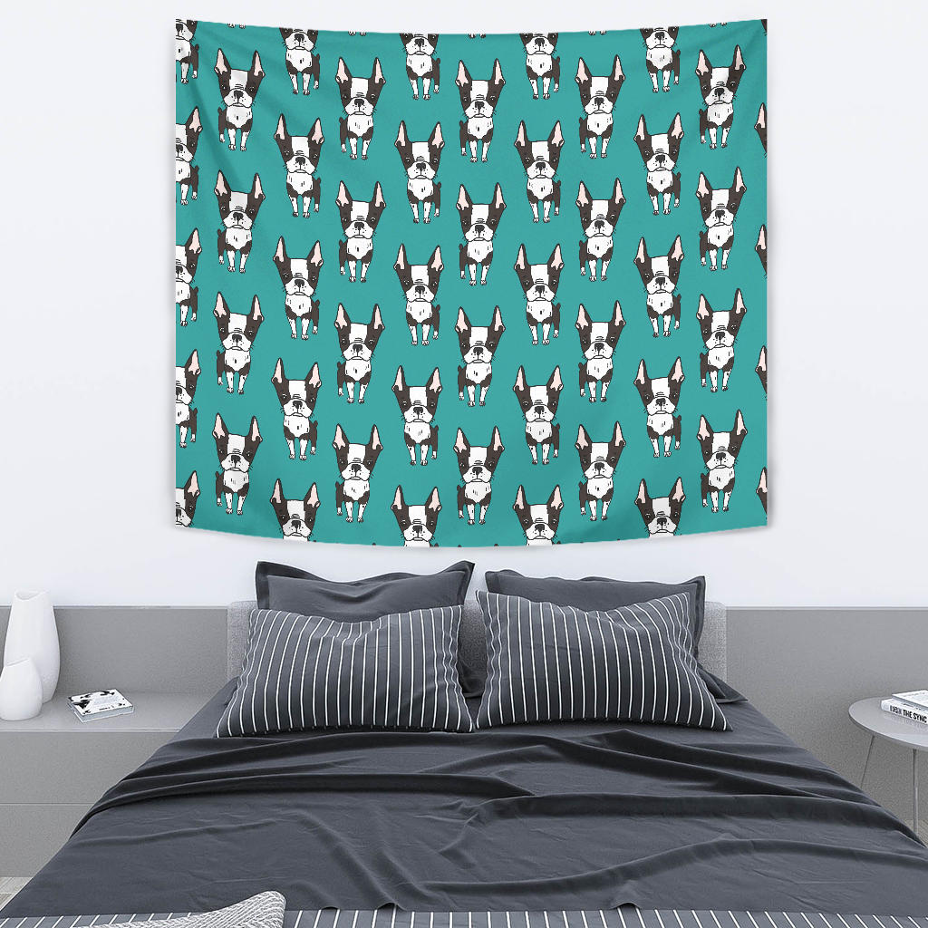 Hand Drawn Boston Terrier Dog Pattern Wall Tapestry