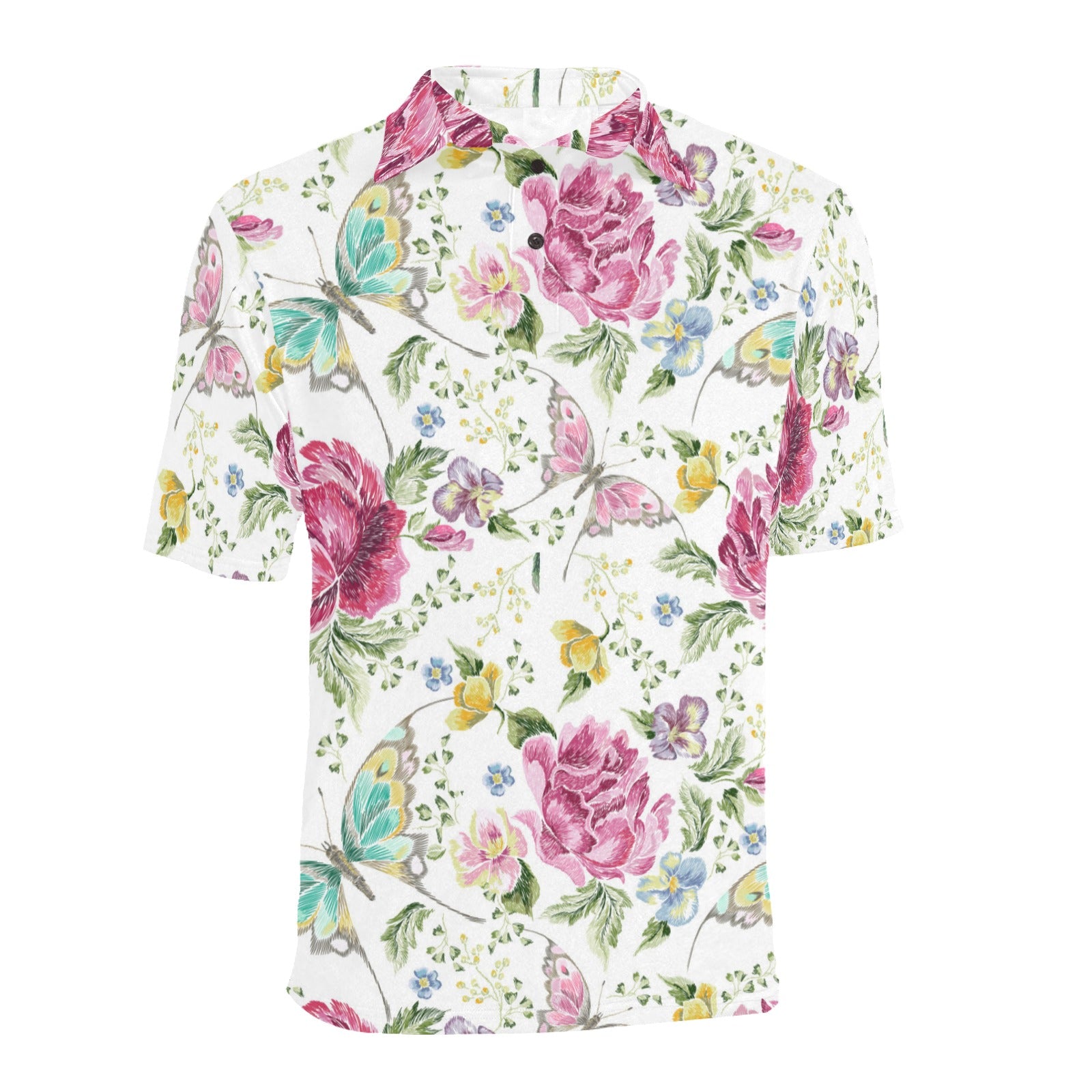 Hand drawn butterfly rose Men's All Over Print Polo Shirt