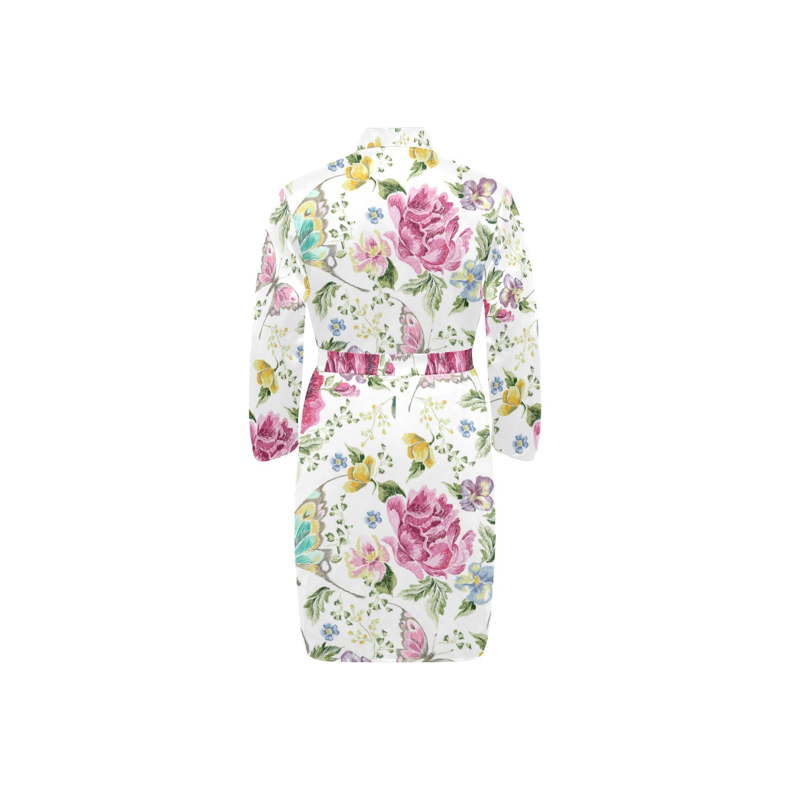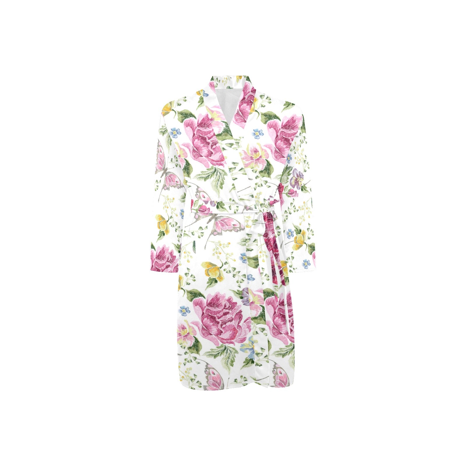 Hand drawn butterfly rose Men's Long Sleeve Belted Night Robe