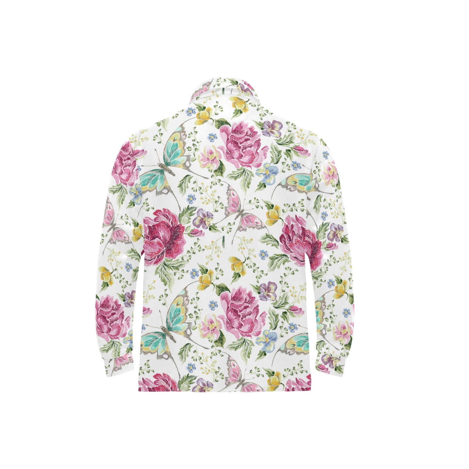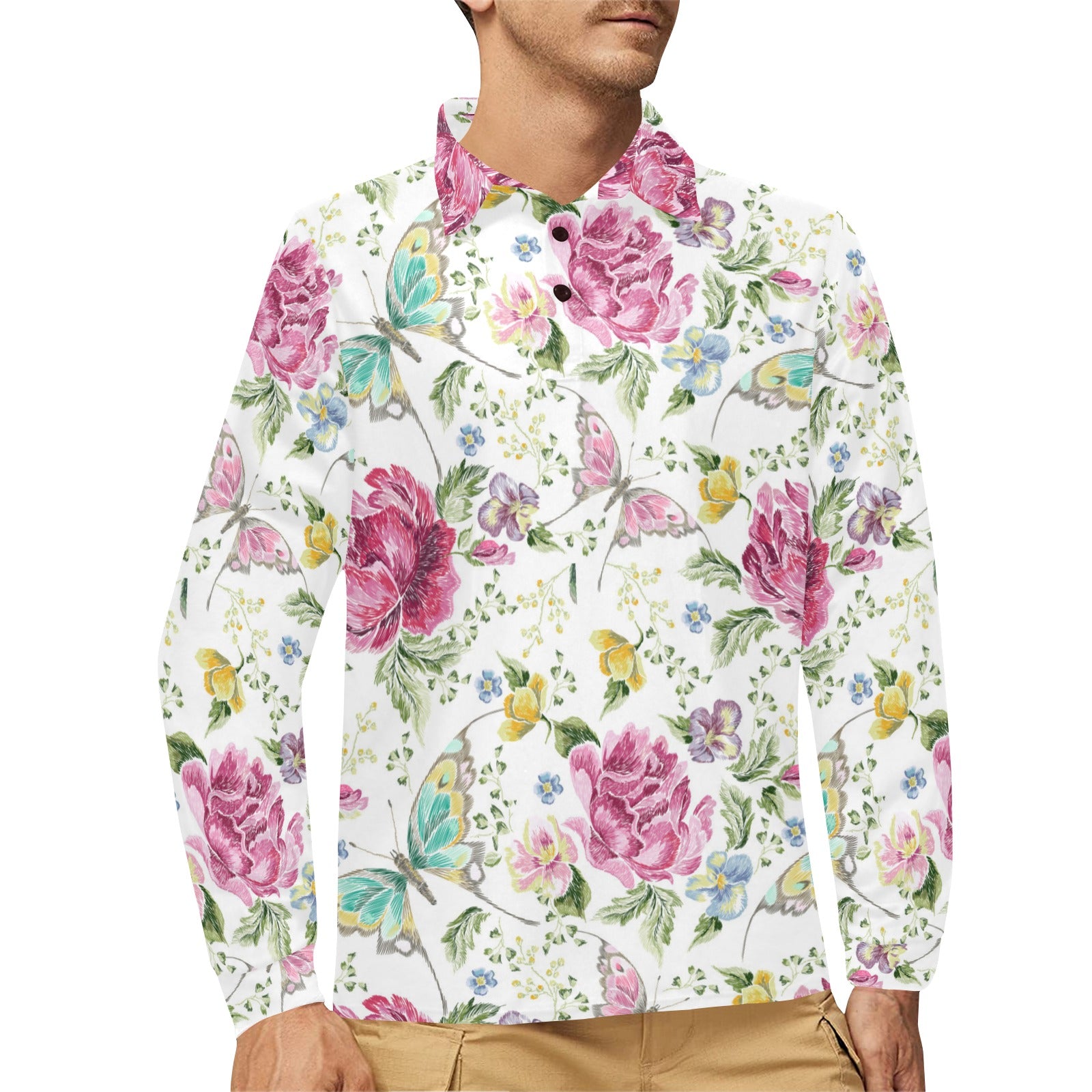 Hand drawn butterfly rose Men's Long Sleeve Polo Shirt
