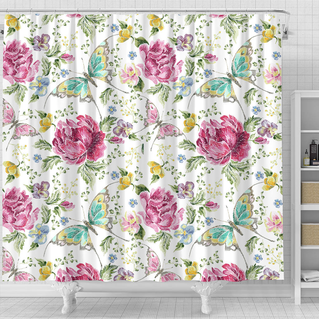 Hand Drawn Butterfly Rose Shower Curtain Fulfilled In US