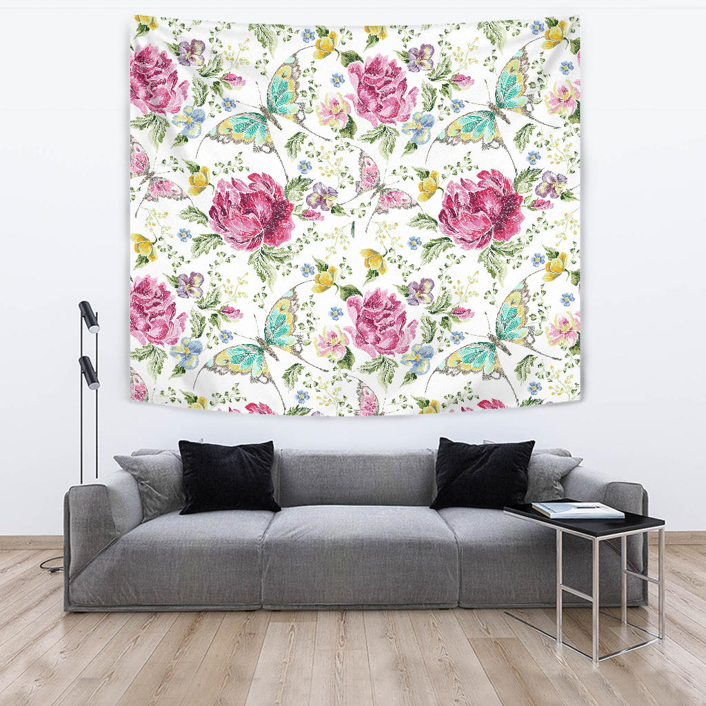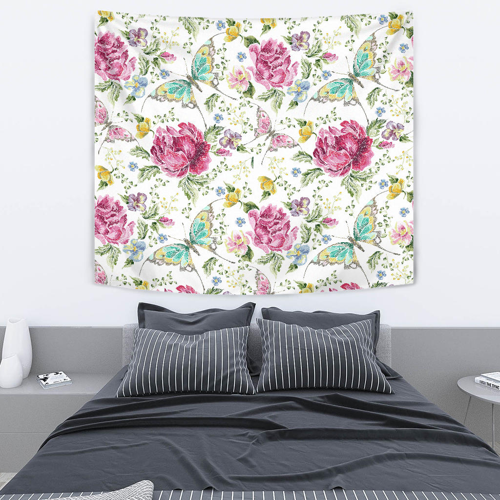 Hand drawn butterfly rose Tapestry is a uniqued design and limited item. It made to order, hand printed, and sewn with love in our factory.