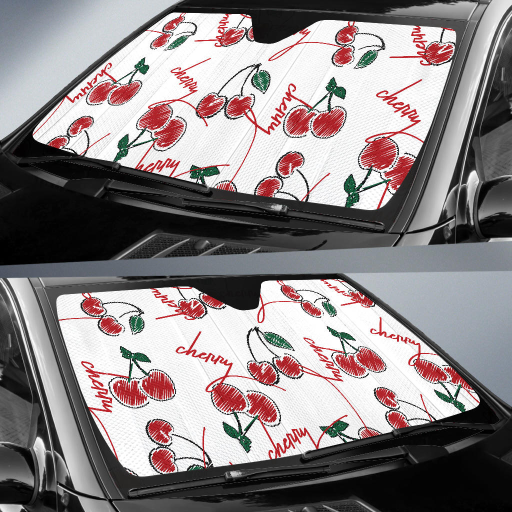 Hand Drawn Cherry Pattern Car Sun Shade