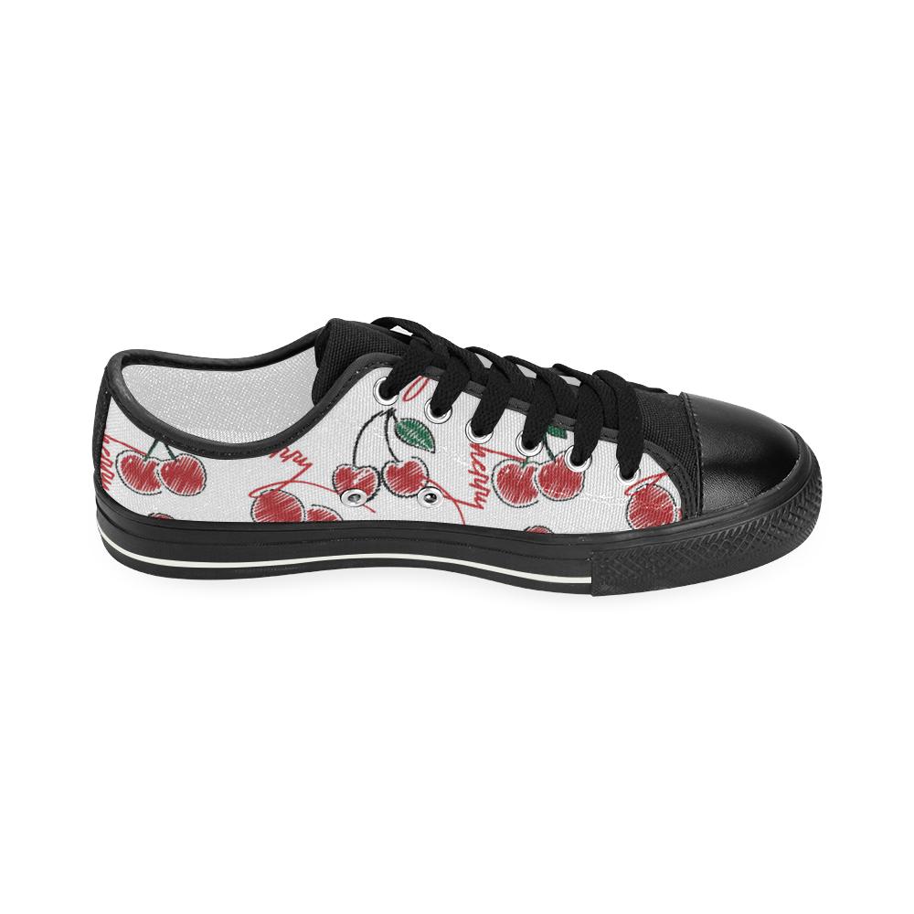 Hand drawn cherry pattern Kids' Boys' Girls' Low Top Canvas Shoes Black