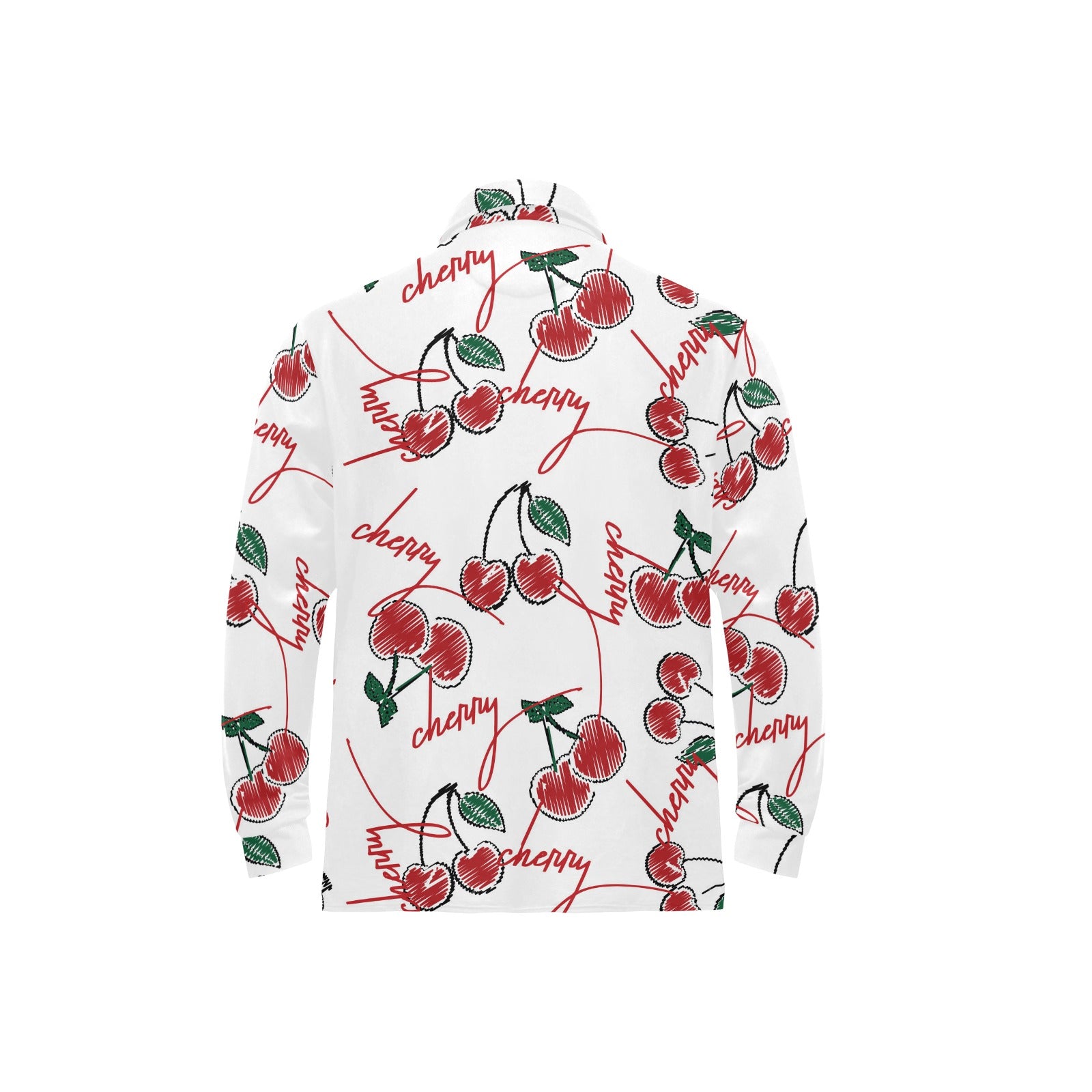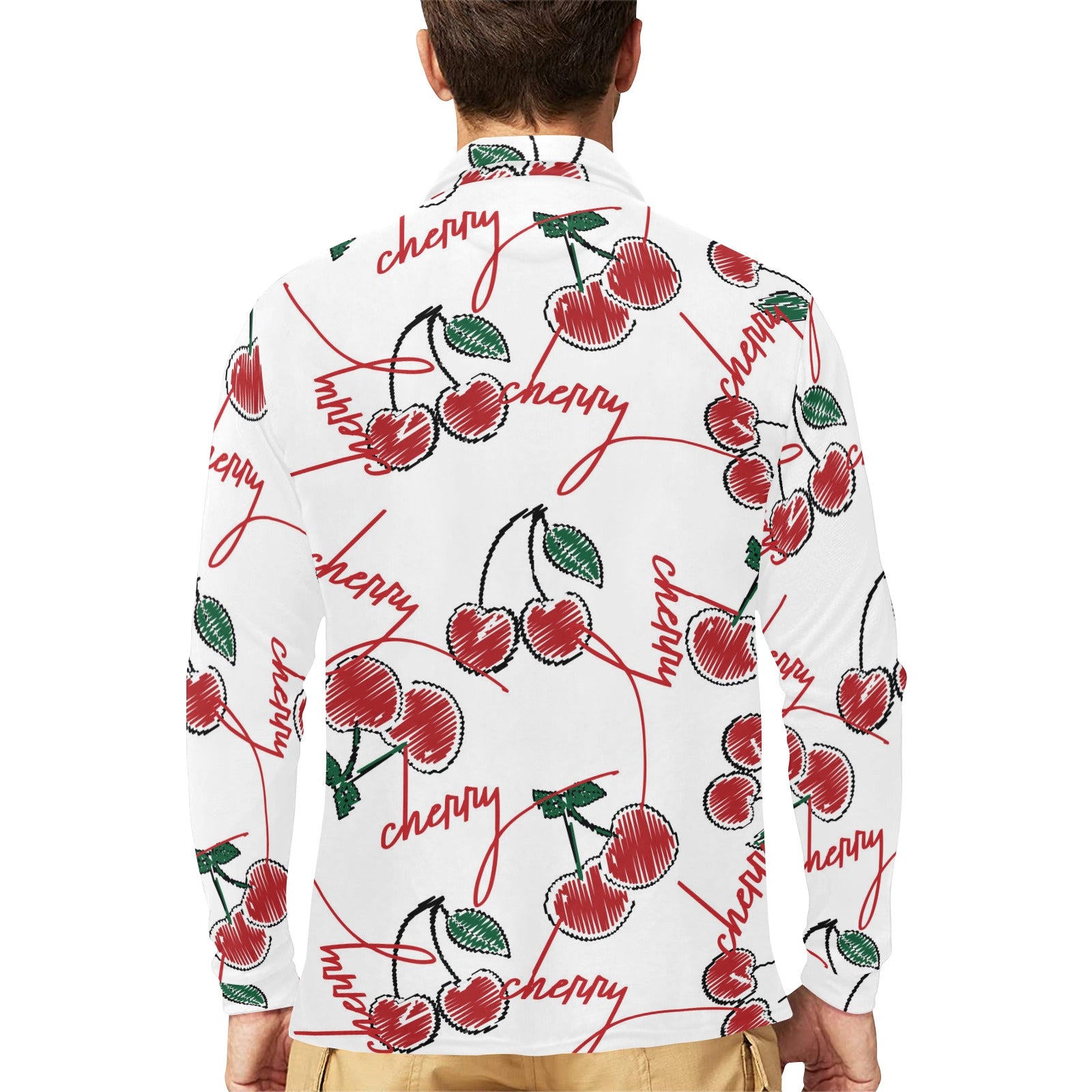 Hand drawn cherry pattern Men's Long Sleeve Polo Shirt