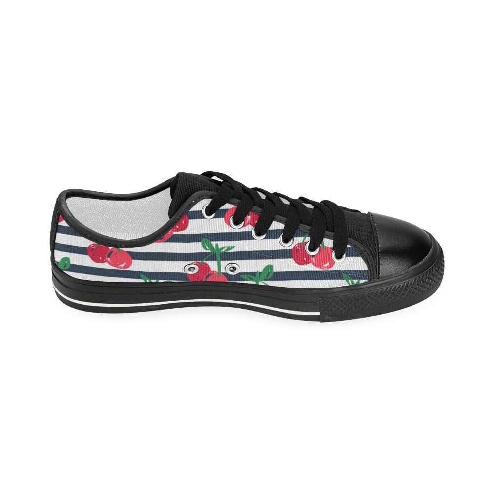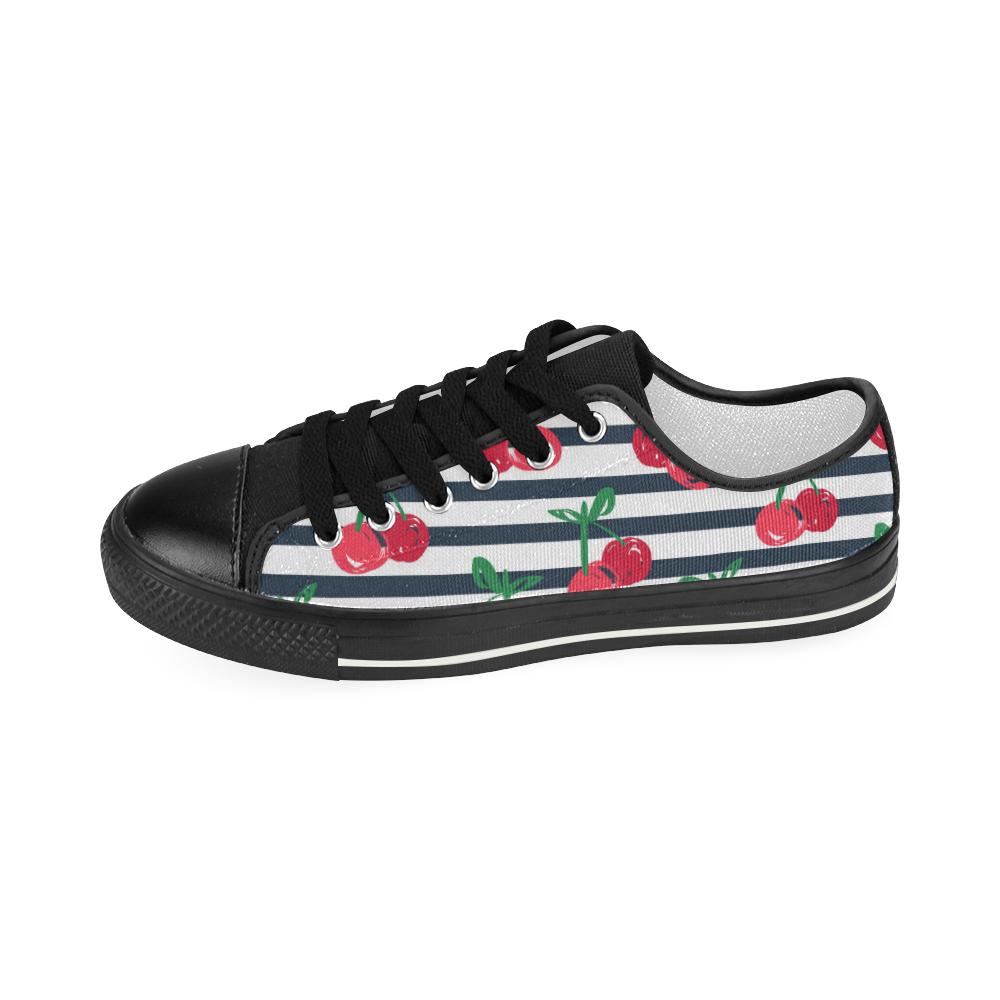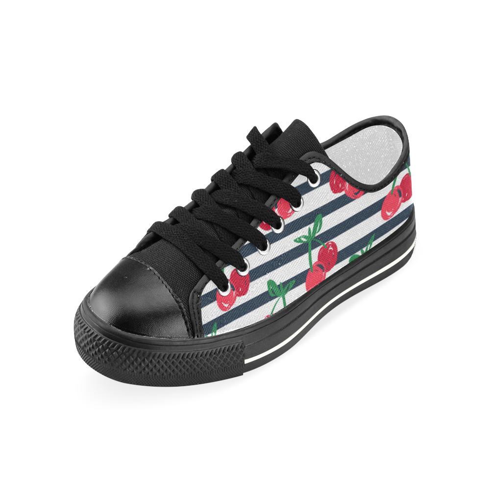 Hand drawn cherry pattern striped background Kids' Boys' Girls' Low Top Canvas Shoes Black
