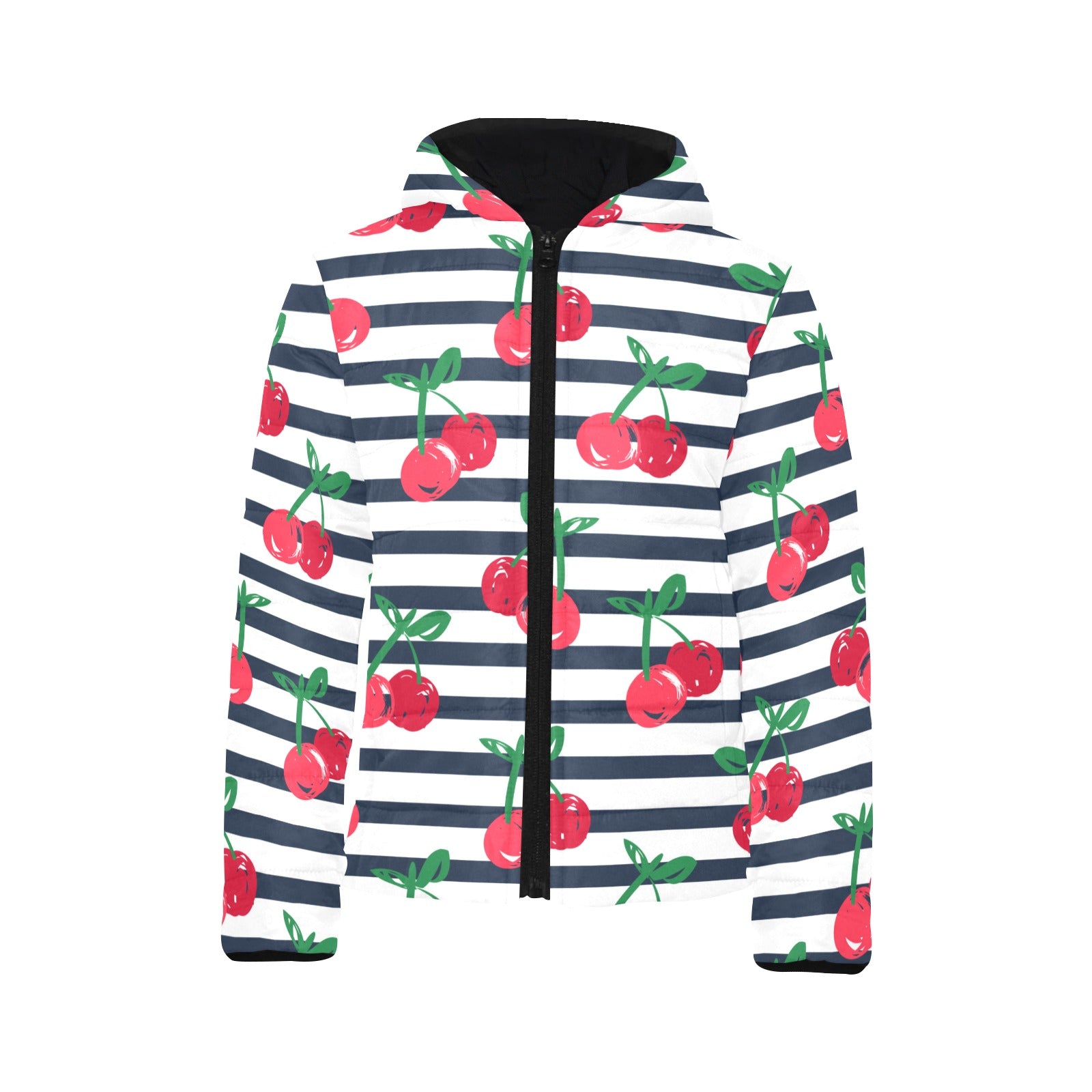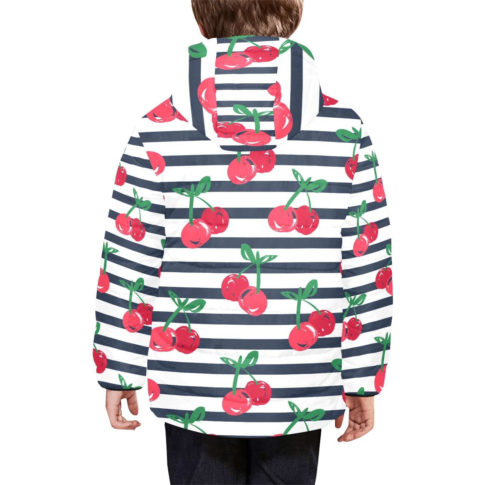 Hand drawn cherry pattern striped background Kids' Boys' Girls' Padded Hooded Jacket