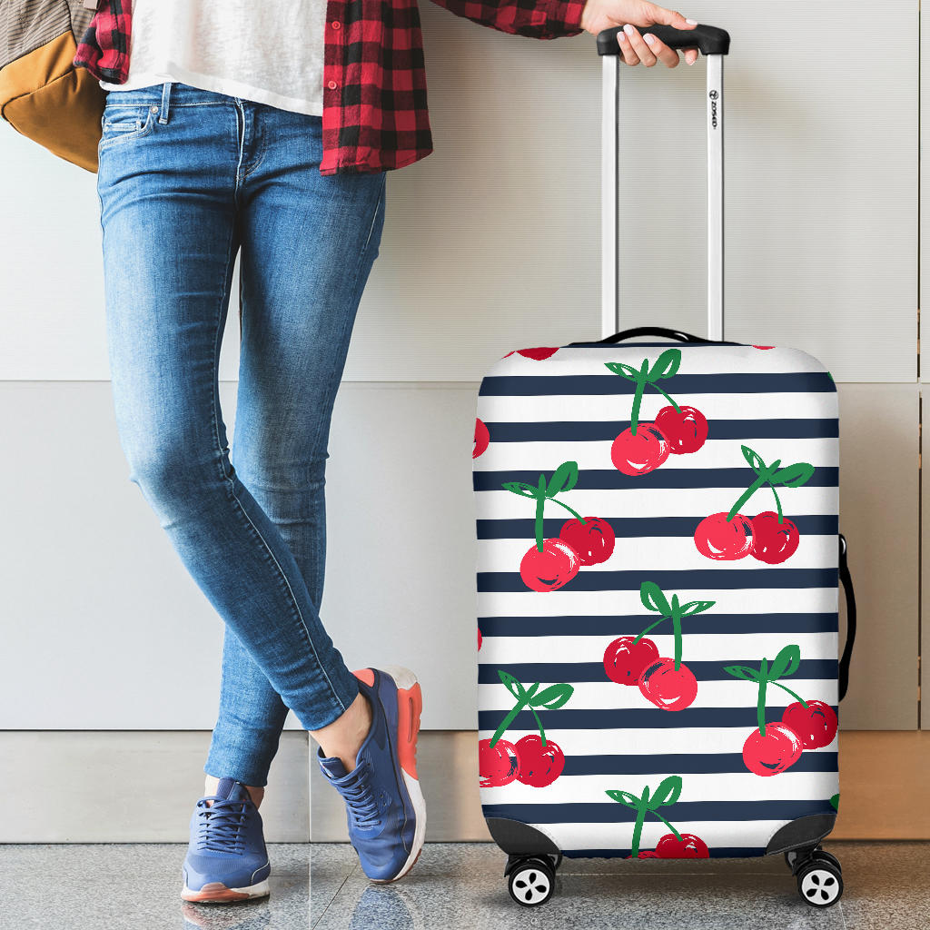 Hand drawn cherry pattern striped background Luggage Covers is a uniqued design and limited item. It made to order, hand printed, and sewn with love in our factory.