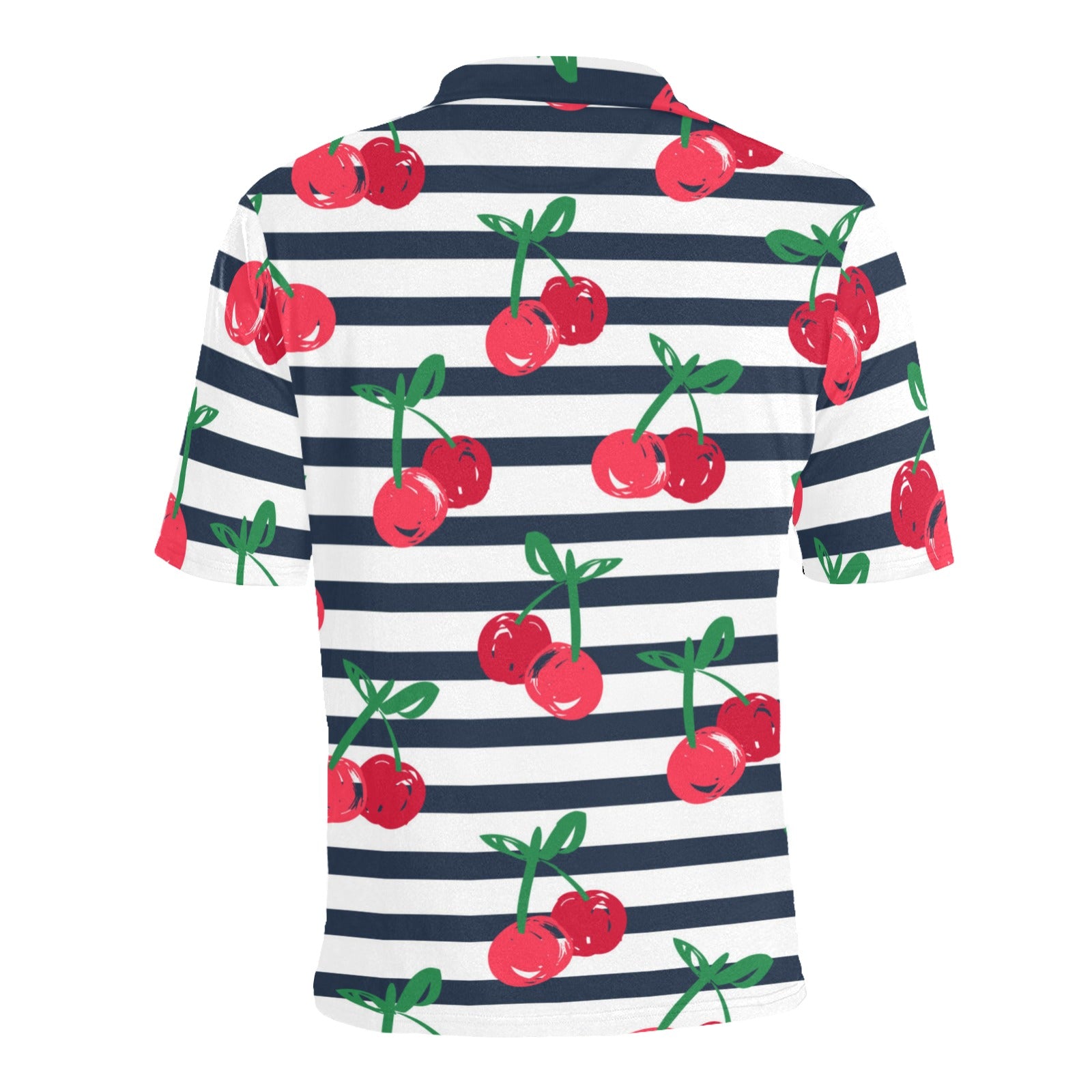 Hand drawn cherry pattern striped background Men's All Over Print Polo Shirt