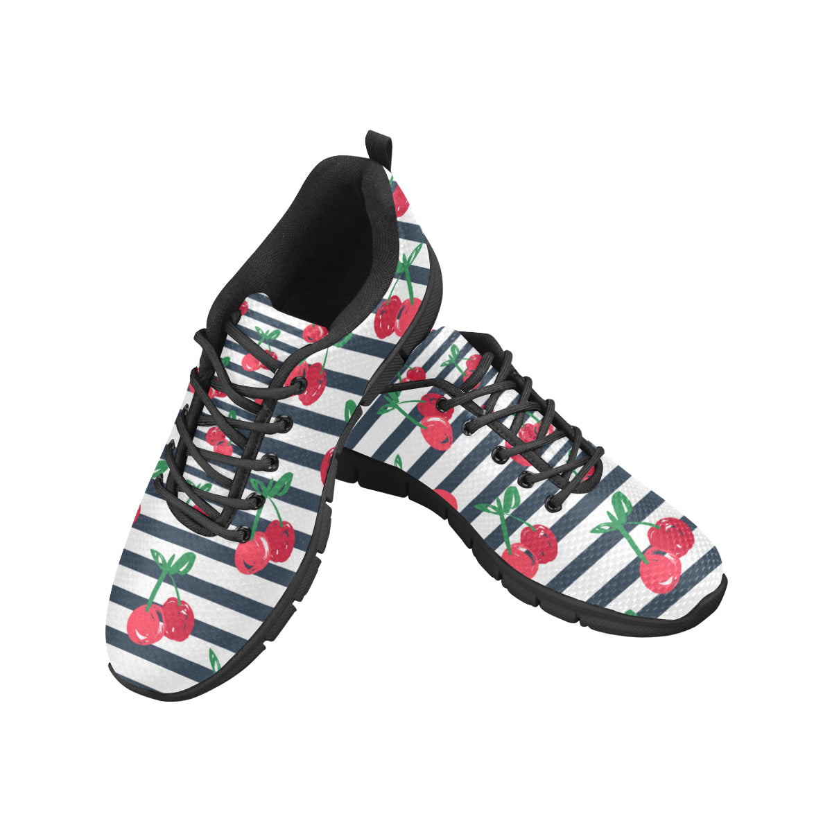 Hand drawn cherry pattern striped background Men's Sneaker Shoes