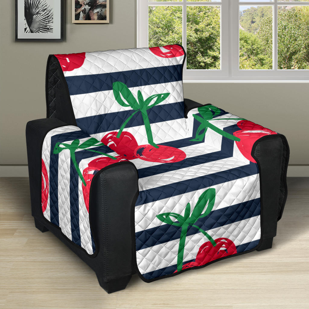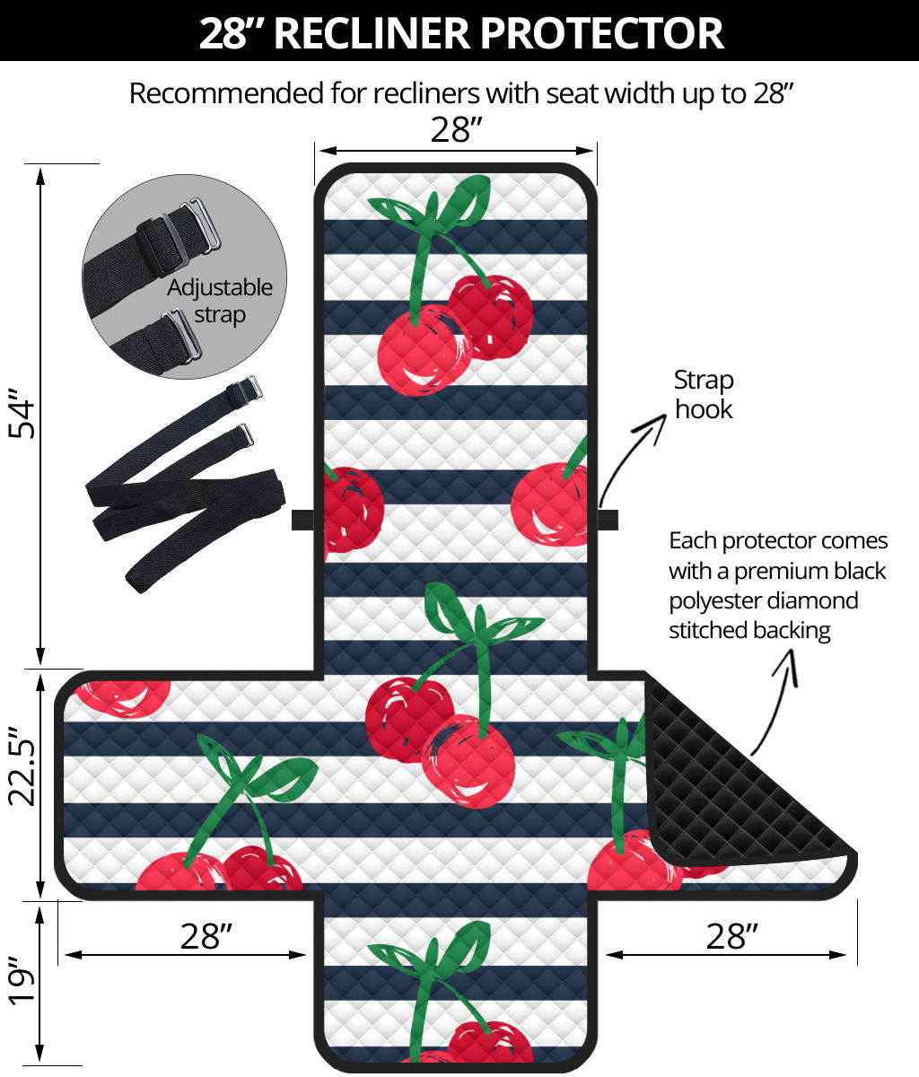 Hand drawn cherry pattern striped background Recliner Cover Protector