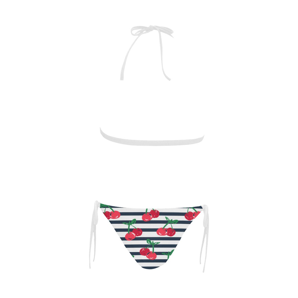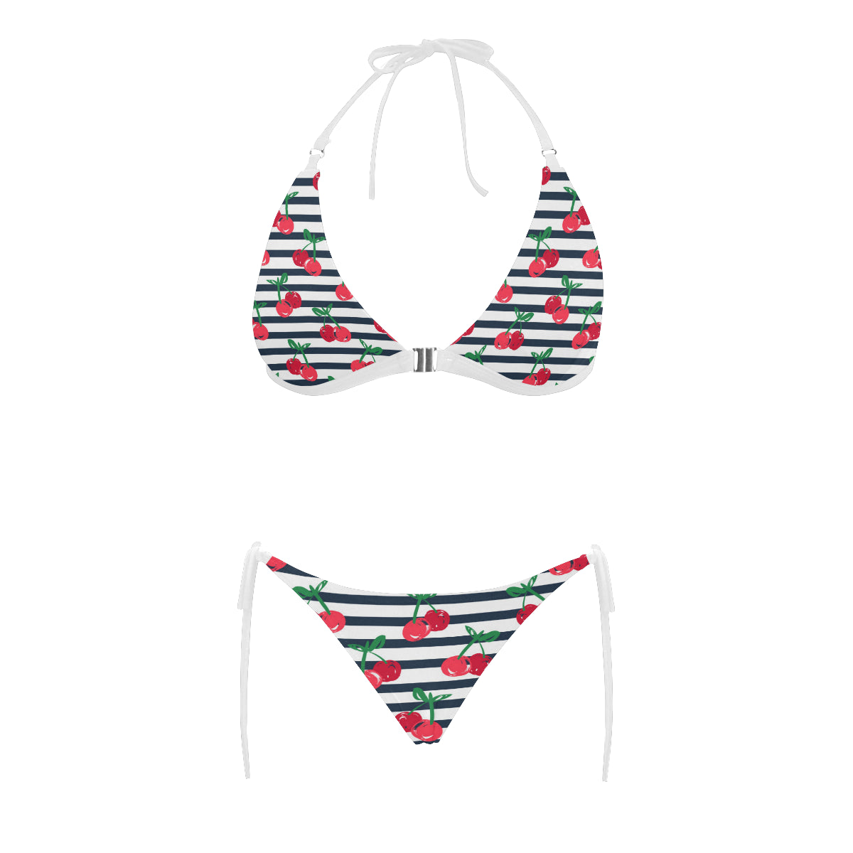 Hand drawn cherry pattern striped background Sexy Bikinis Two-Piece Swimsuits are uniqued design and limited item. It made to order, hand printed, and sewn with love in our factory.