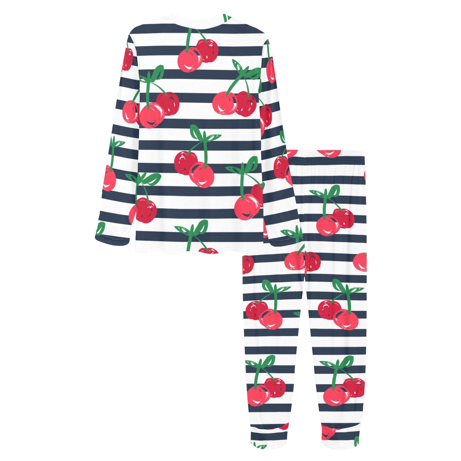 Hand drawn cherry pattern striped background Women's All Over Print Pajama Set