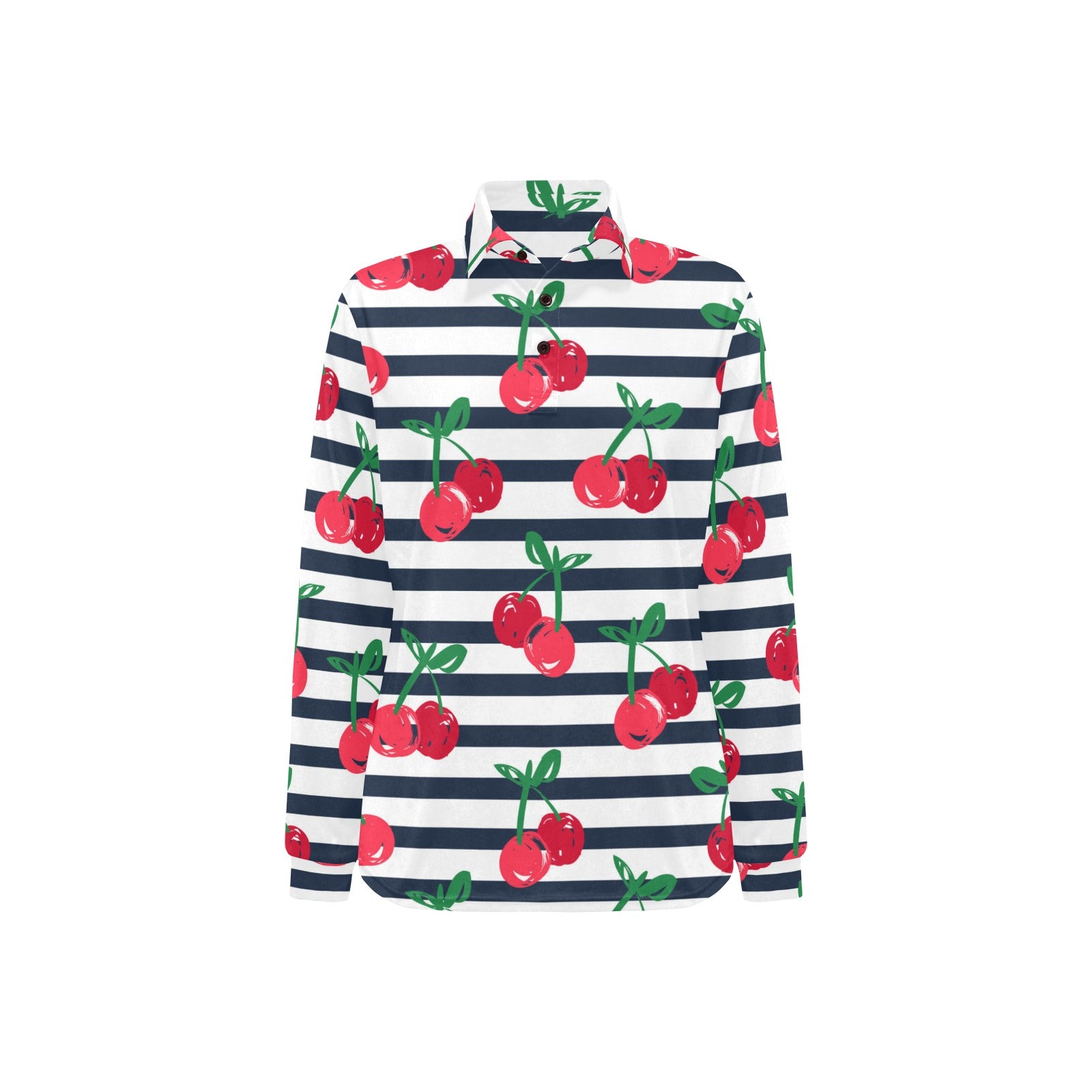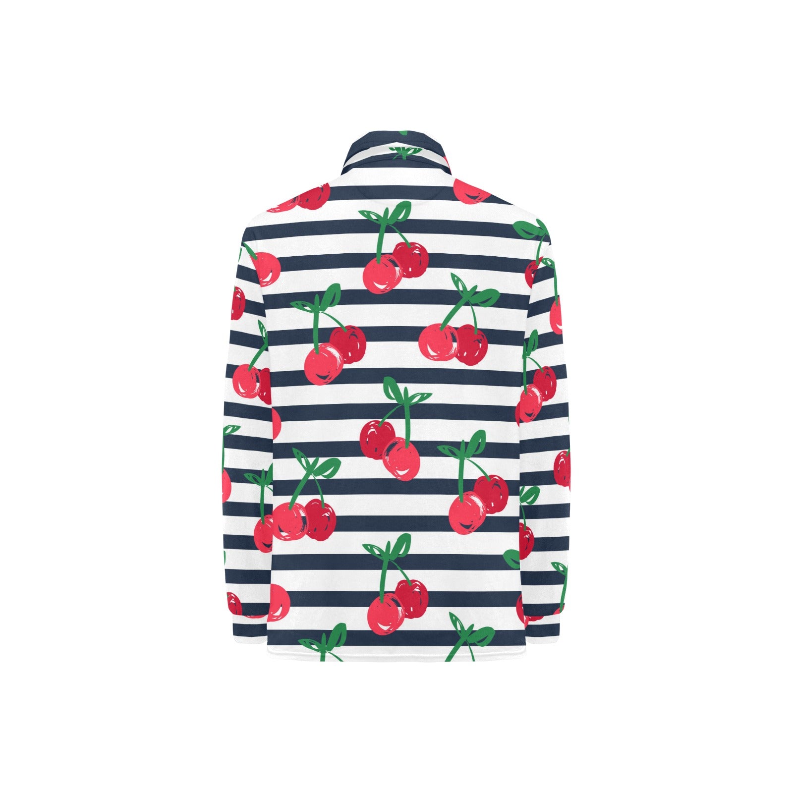 Hand drawn cherry pattern striped background Women's Long Sleeve Polo Shirt