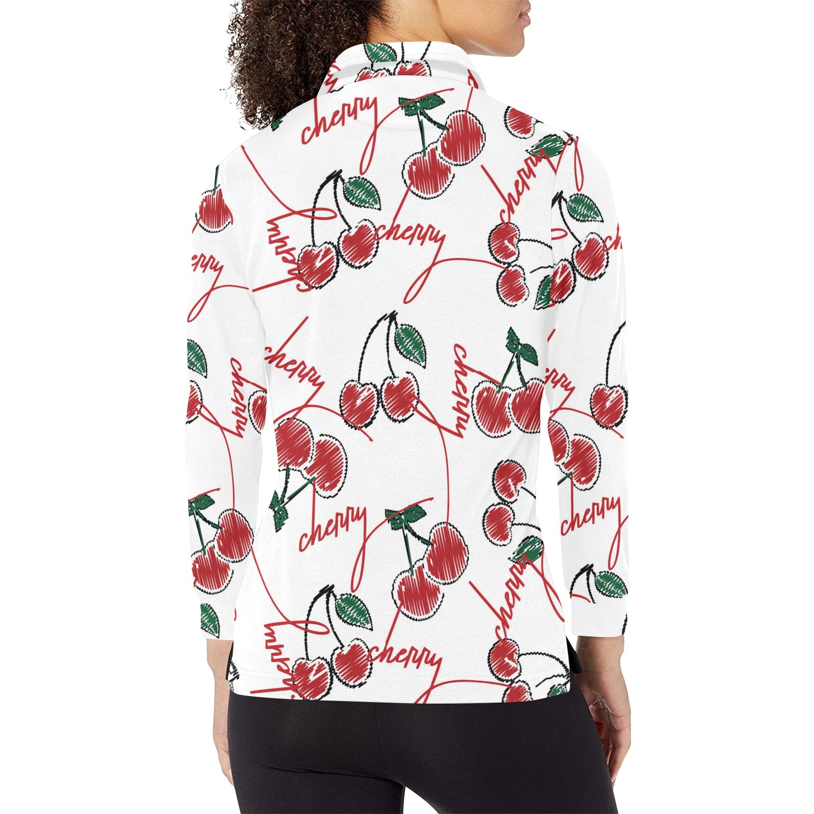 Hand drawn cherry pattern Women's Long Sleeve Polo Shirt