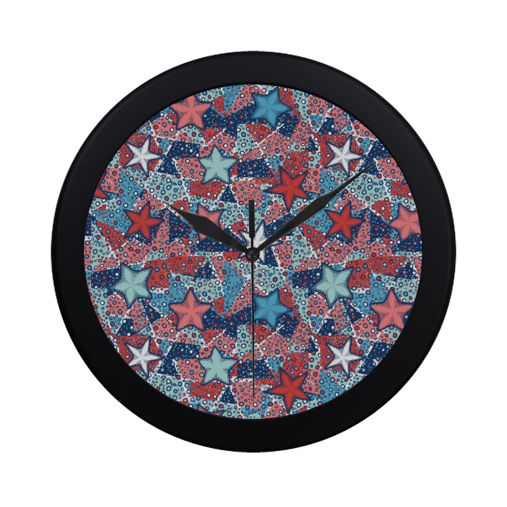 Hand drawn colorful starfish Elegant Black Wall Clock