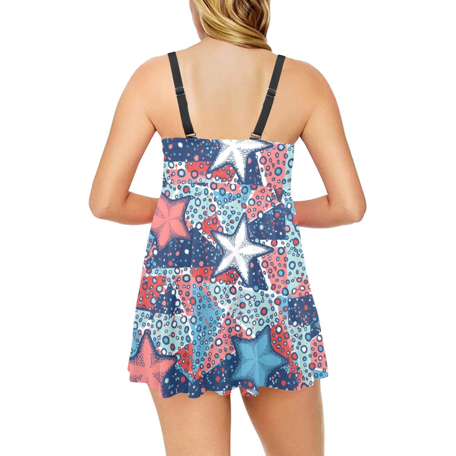 Hand drawn colorful starfish Chest Sexy Pleated Two Piece Swim Dress