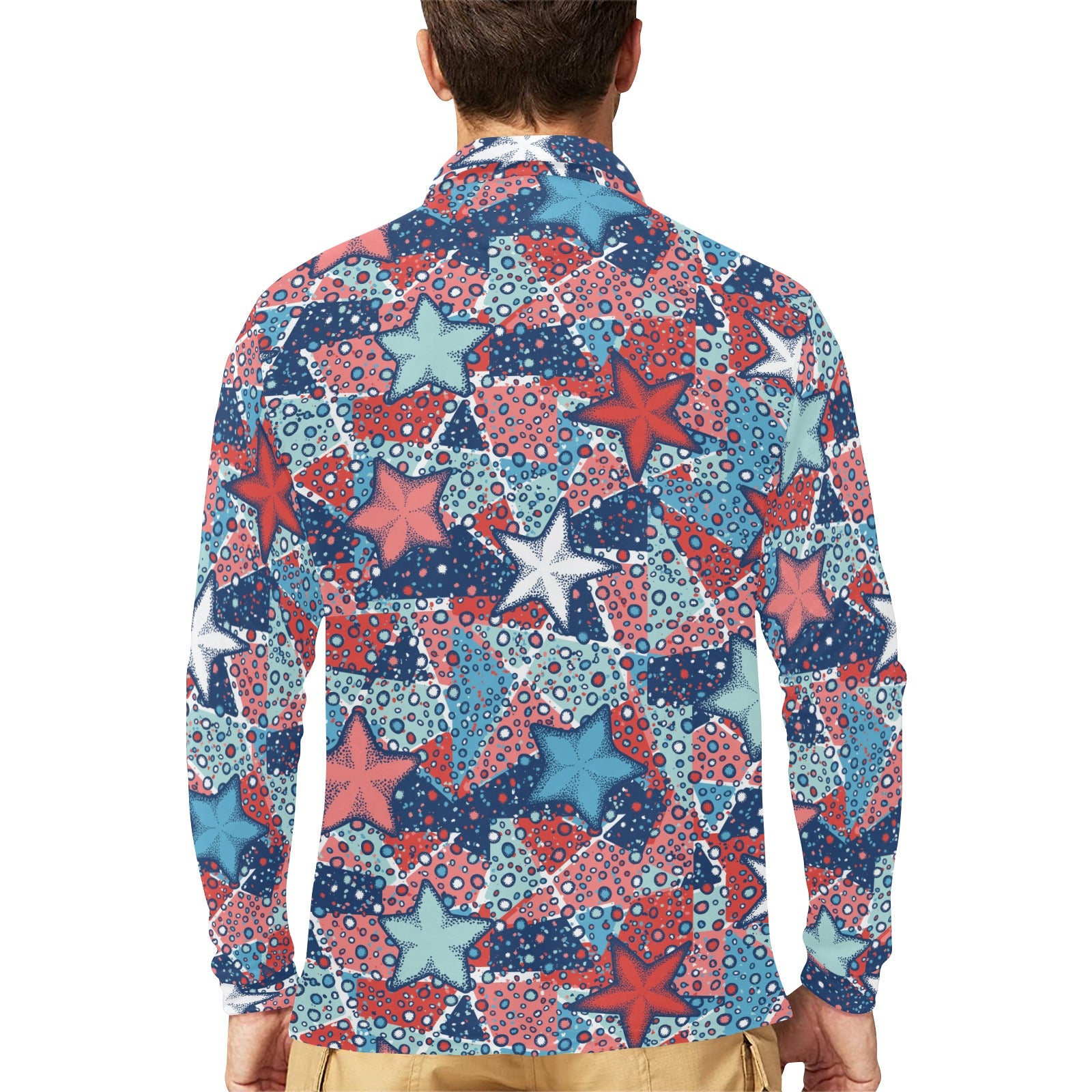 Hand drawn colorful starfish Men's Long Sleeve Polo Shirt