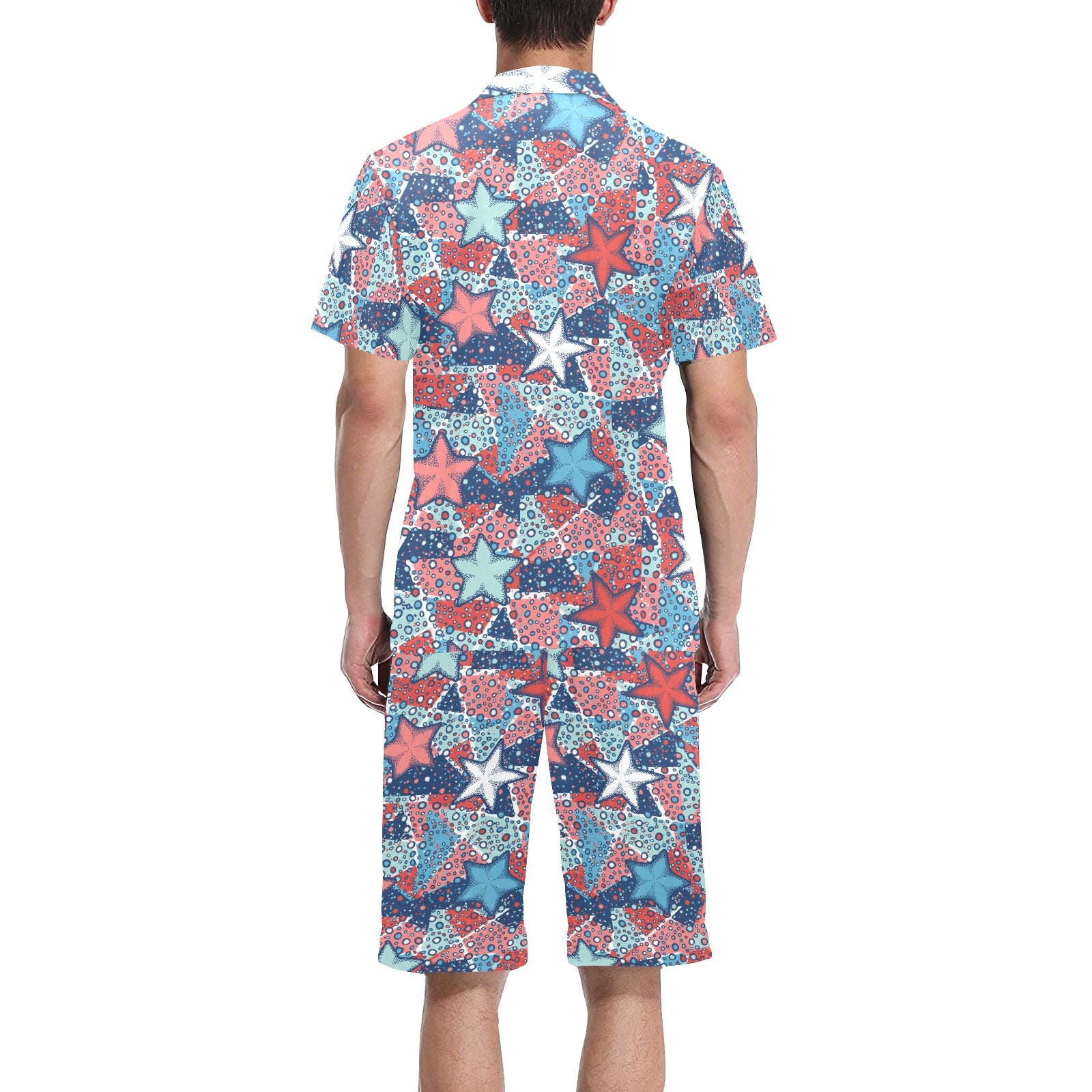 Hand drawn colorful starfish Men's V-Neck Short Pajama Set