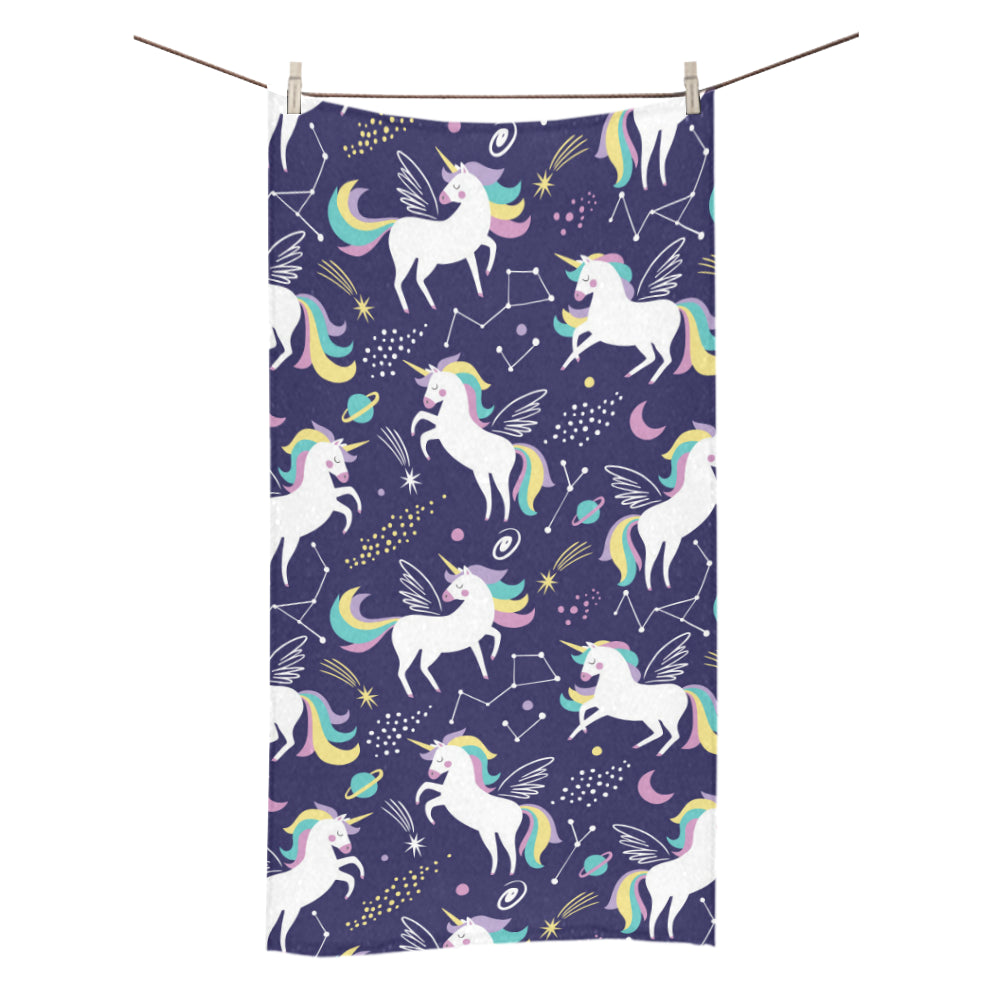 Hand drawn cute unicorn star planet Bath Towel