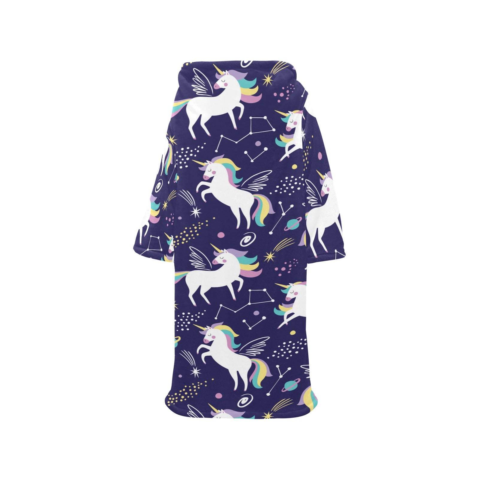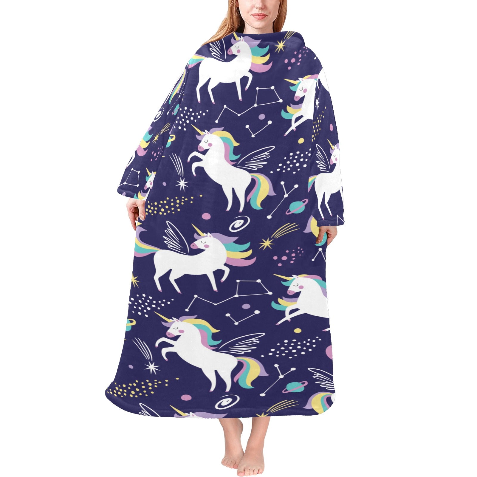 Hand drawn cute unicorn star planet Blanket Robe with Sleeves
