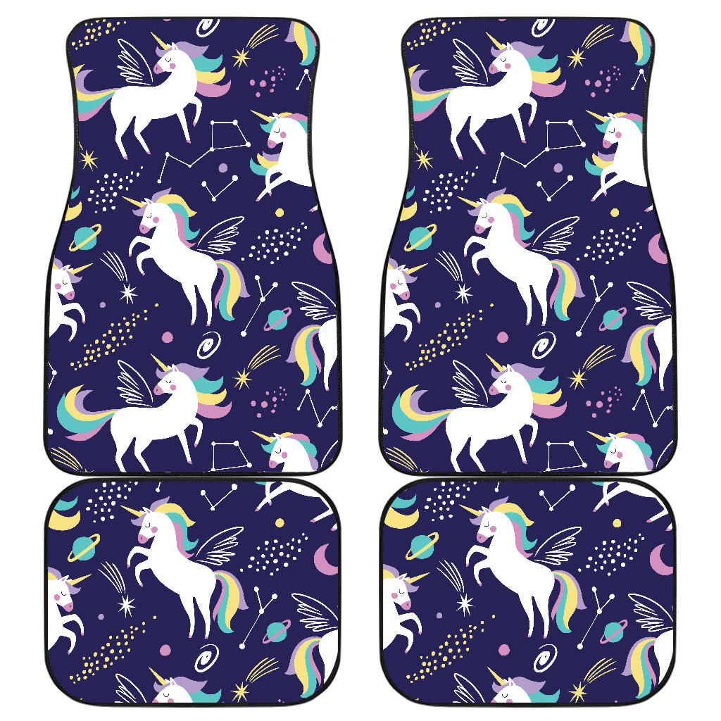 Hand Drawn Cute Unicorn Star Planet Front And Back Car Mats