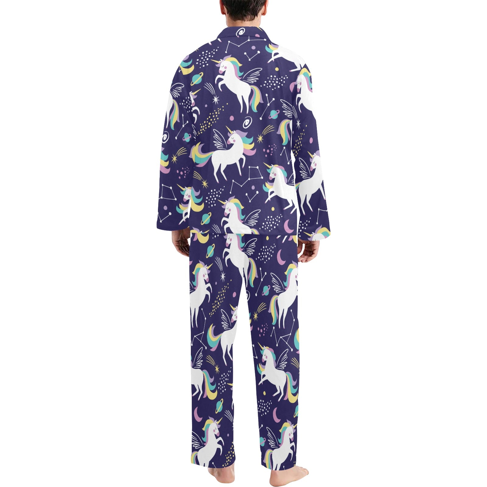 Hand drawn cute unicorn star planet Men's Long Pajama Set