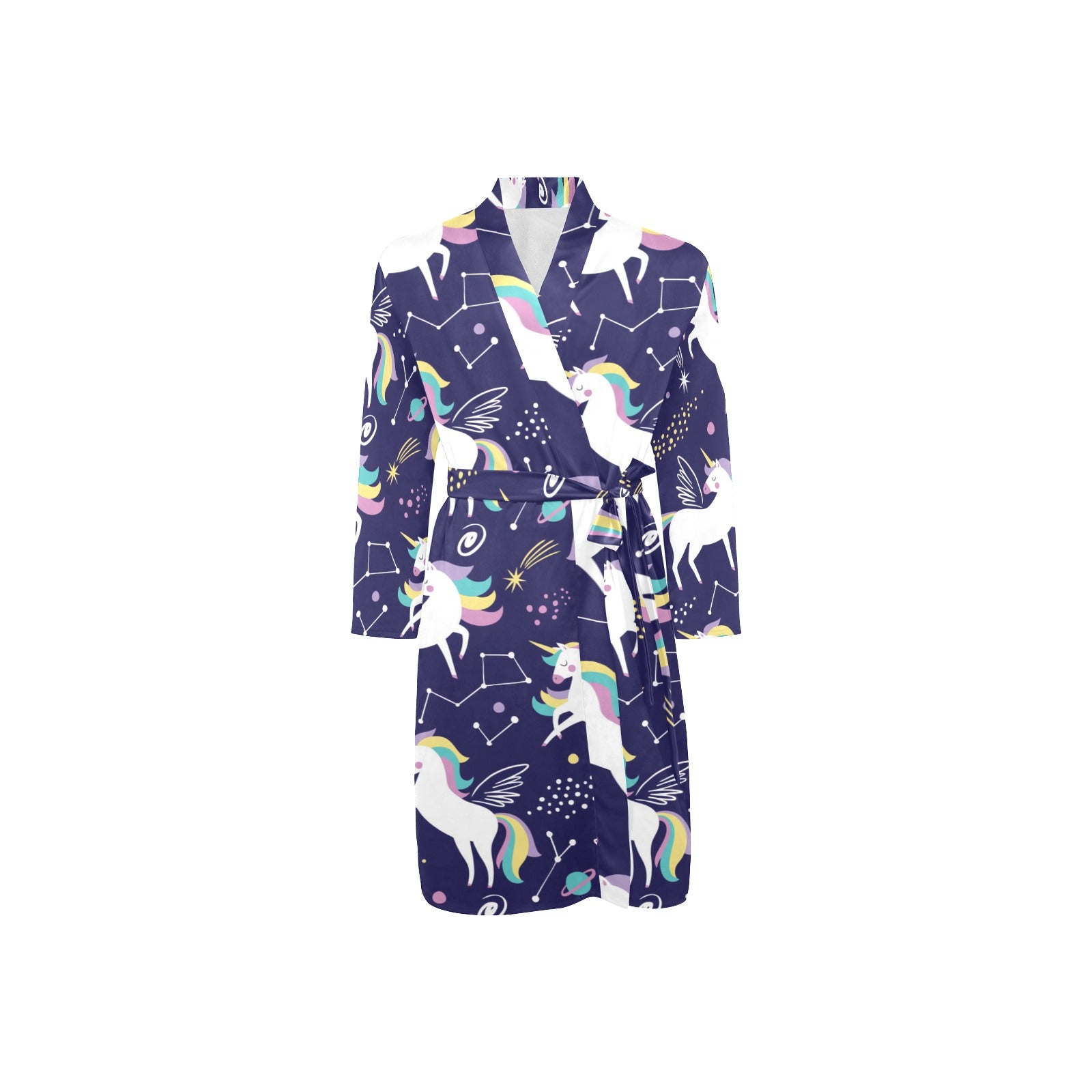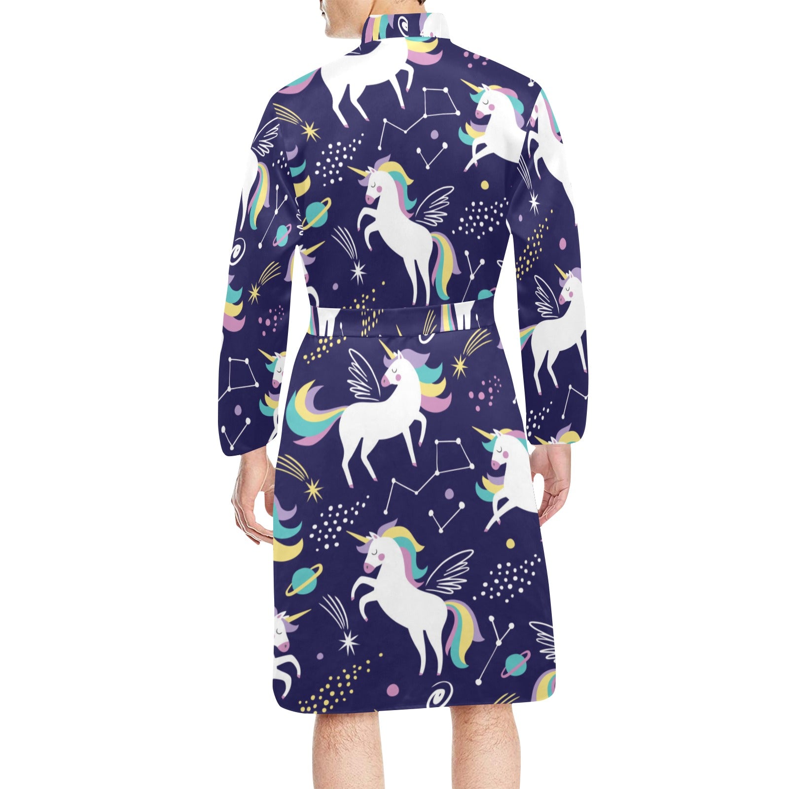 Hand drawn cute unicorn star planet Men's Long Sleeve Belted Night Robe