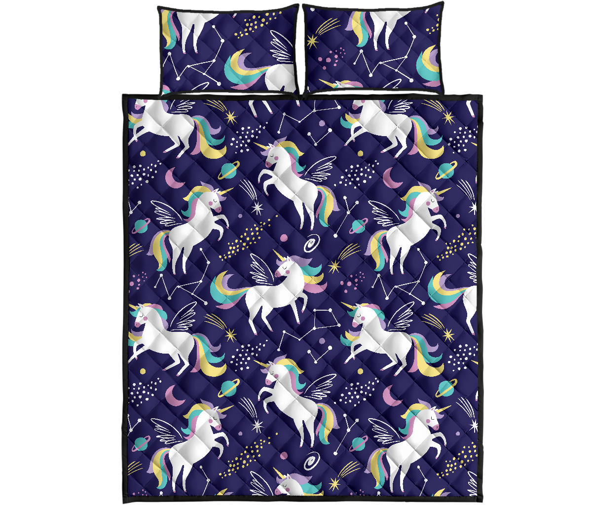 Hand drawn cute unicorn star planet Quilt Bed Set