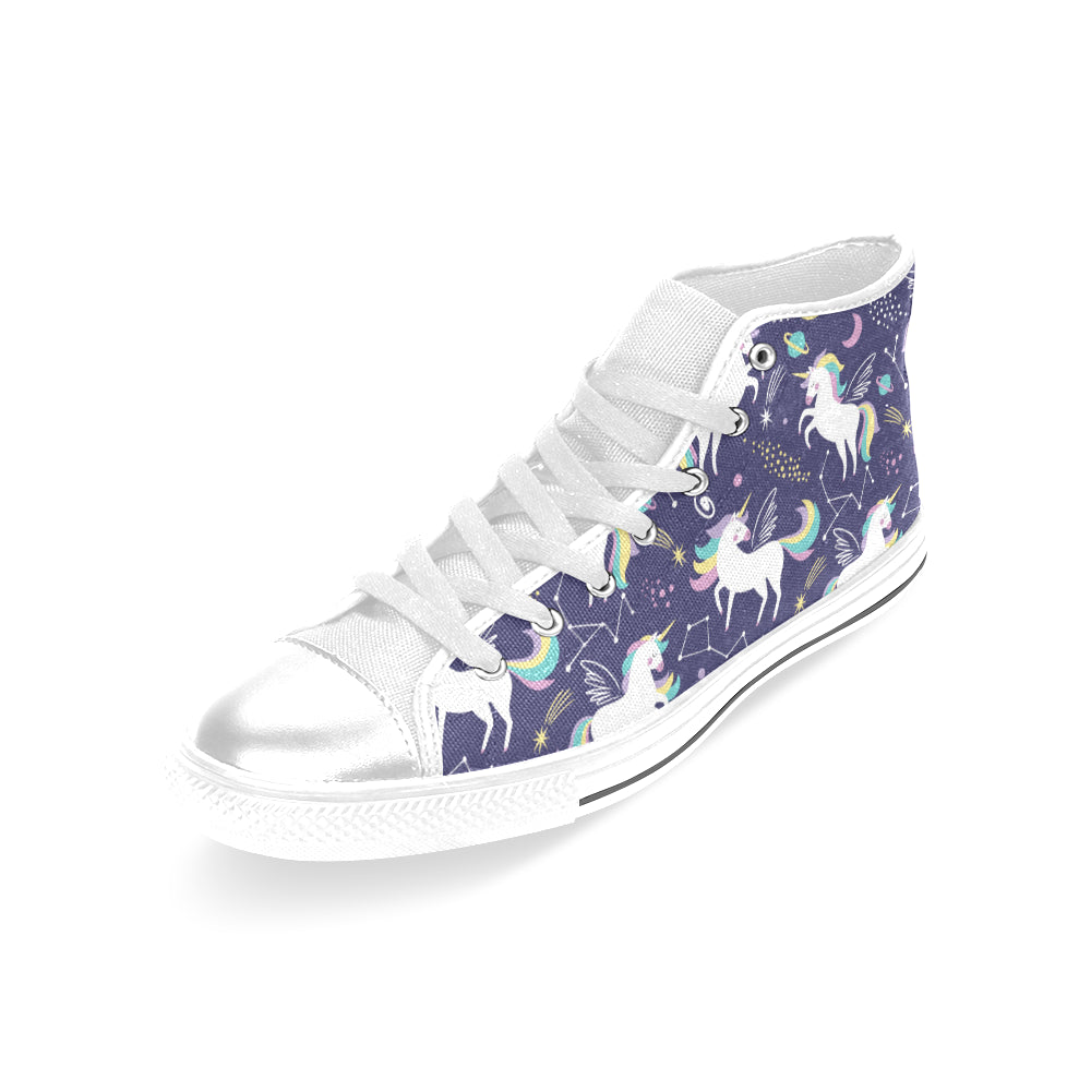 Hand drawn cute unicorn star planet Women's High Top Canvas Shoes White