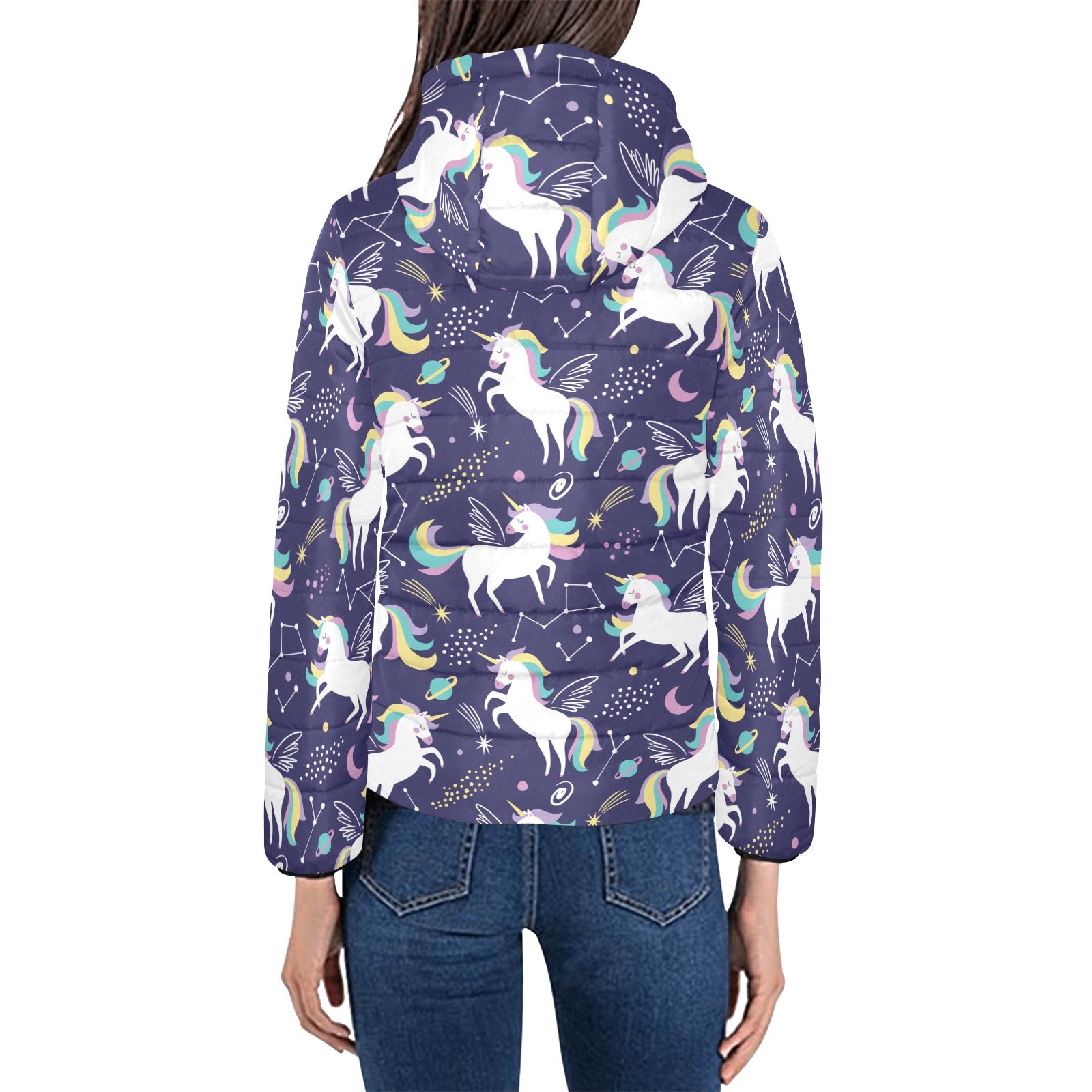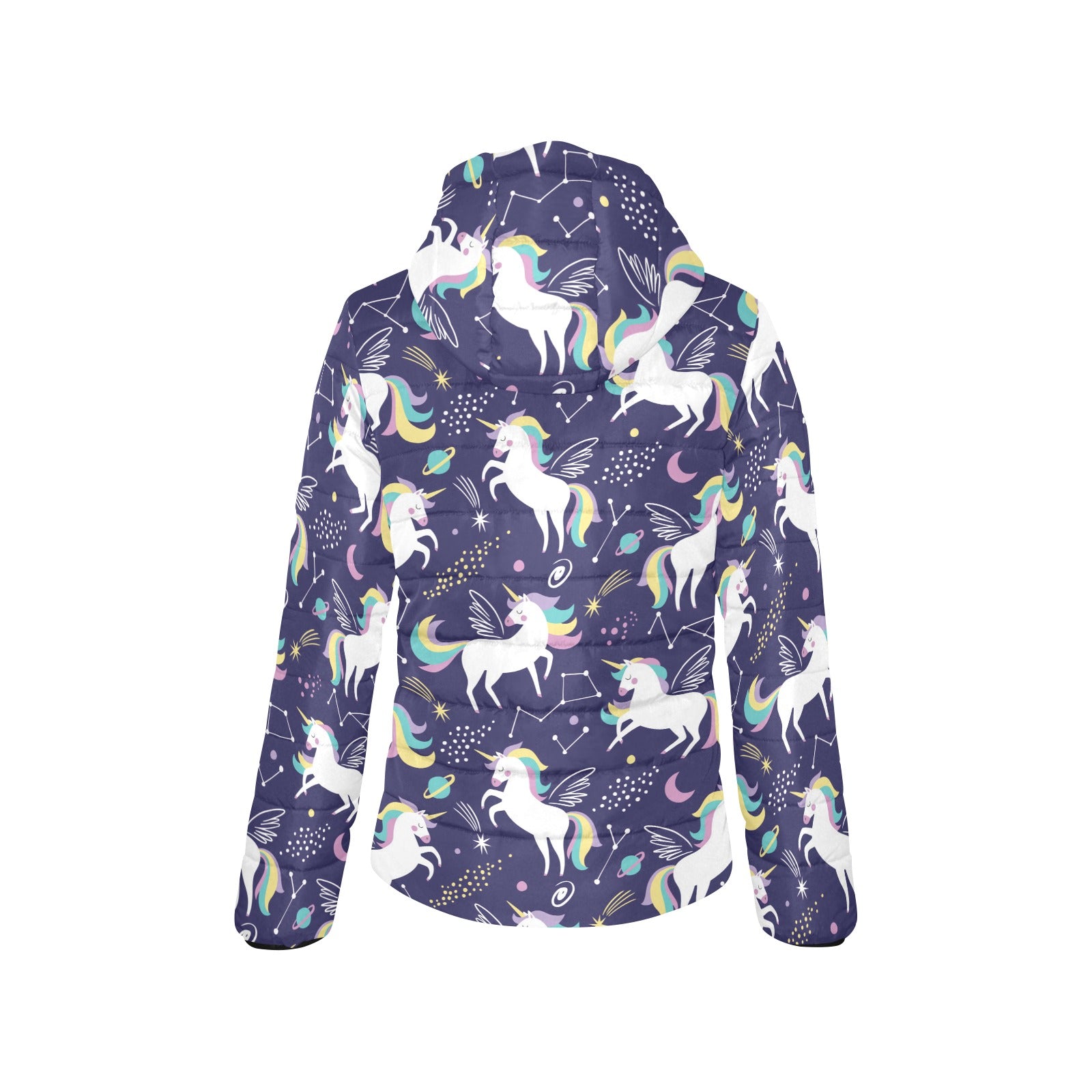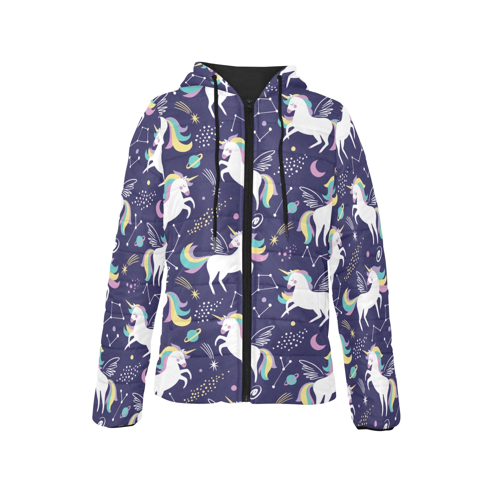 Hand drawn cute unicorn star planet Women's Padded Hooded Jacket
