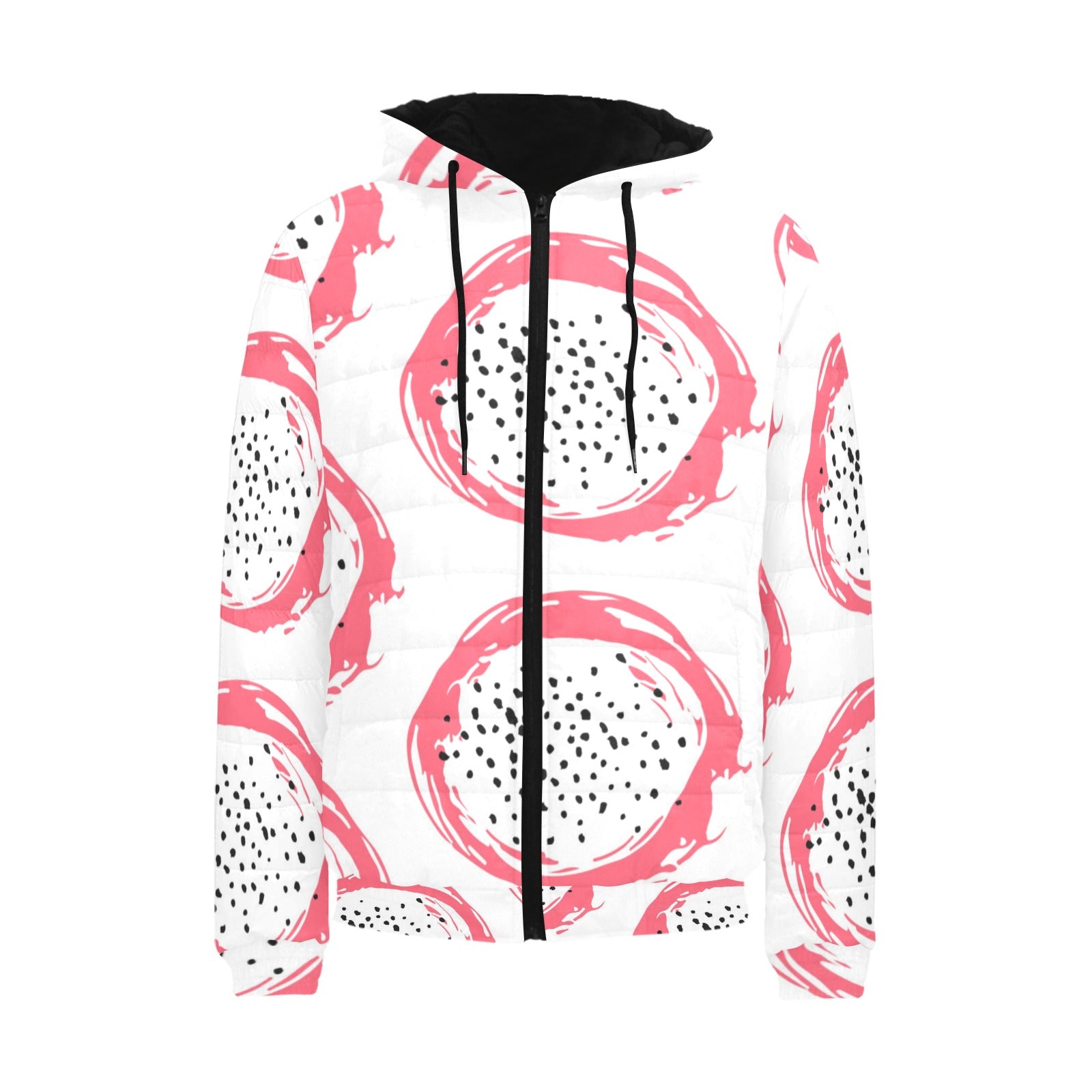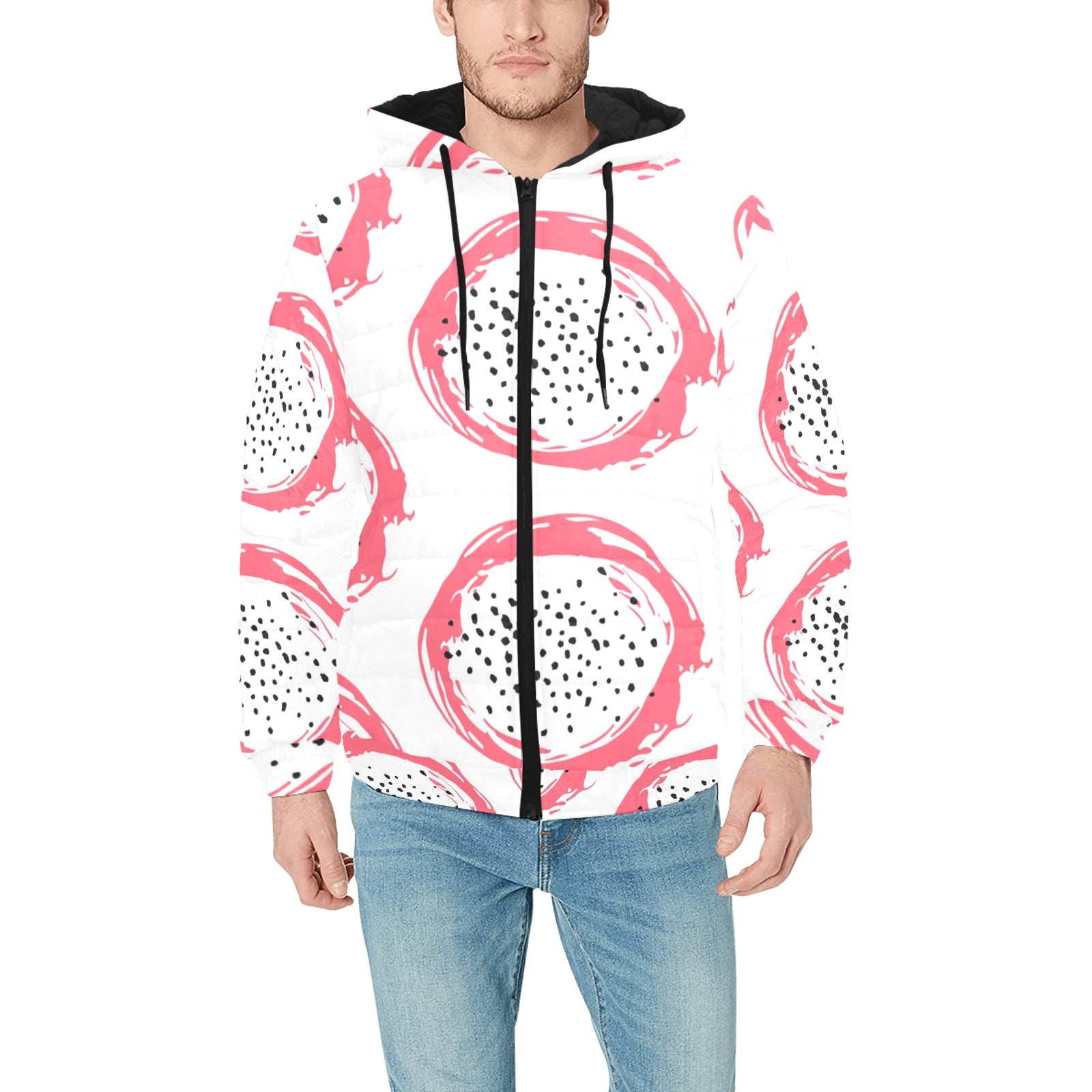 Hand drawn dragon fruit Men's Padded Hooded Jacket