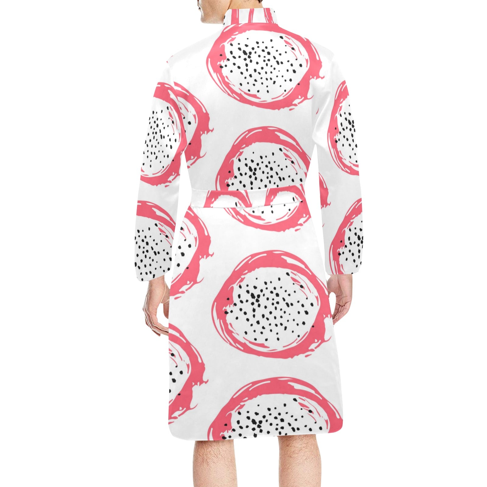 Hand drawn dragon fruit Men's Long Sleeve Belted Night Robe
