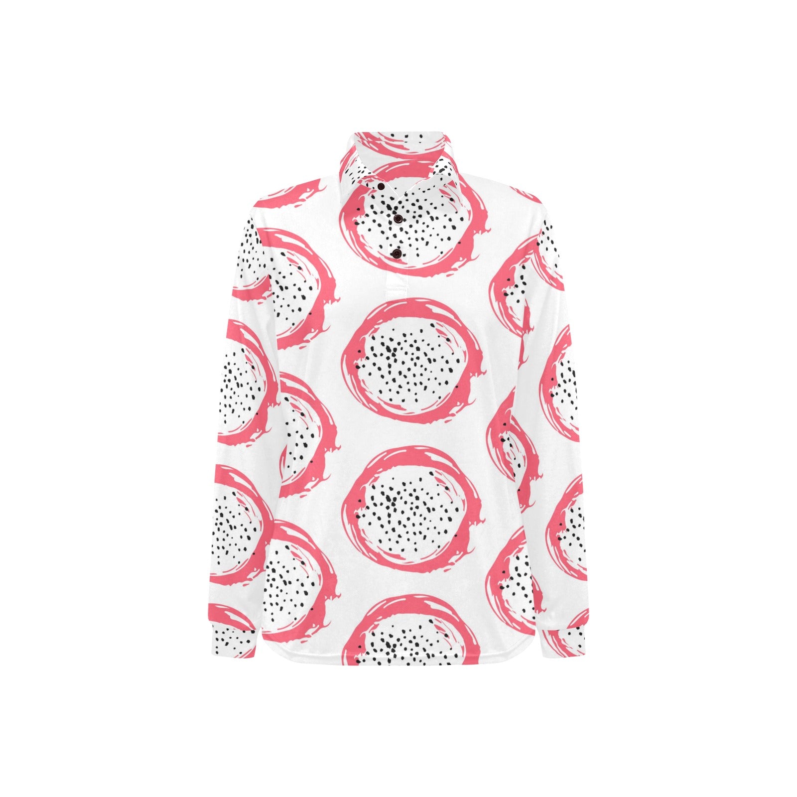 Hand drawn dragon fruit Women's Long Sleeve Polo Shirt