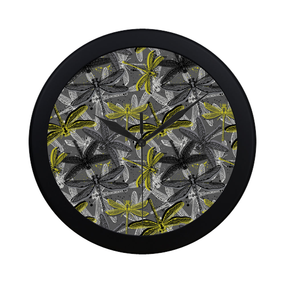 Hand drawn dragonfly pattern Elegant Black Wall Clock