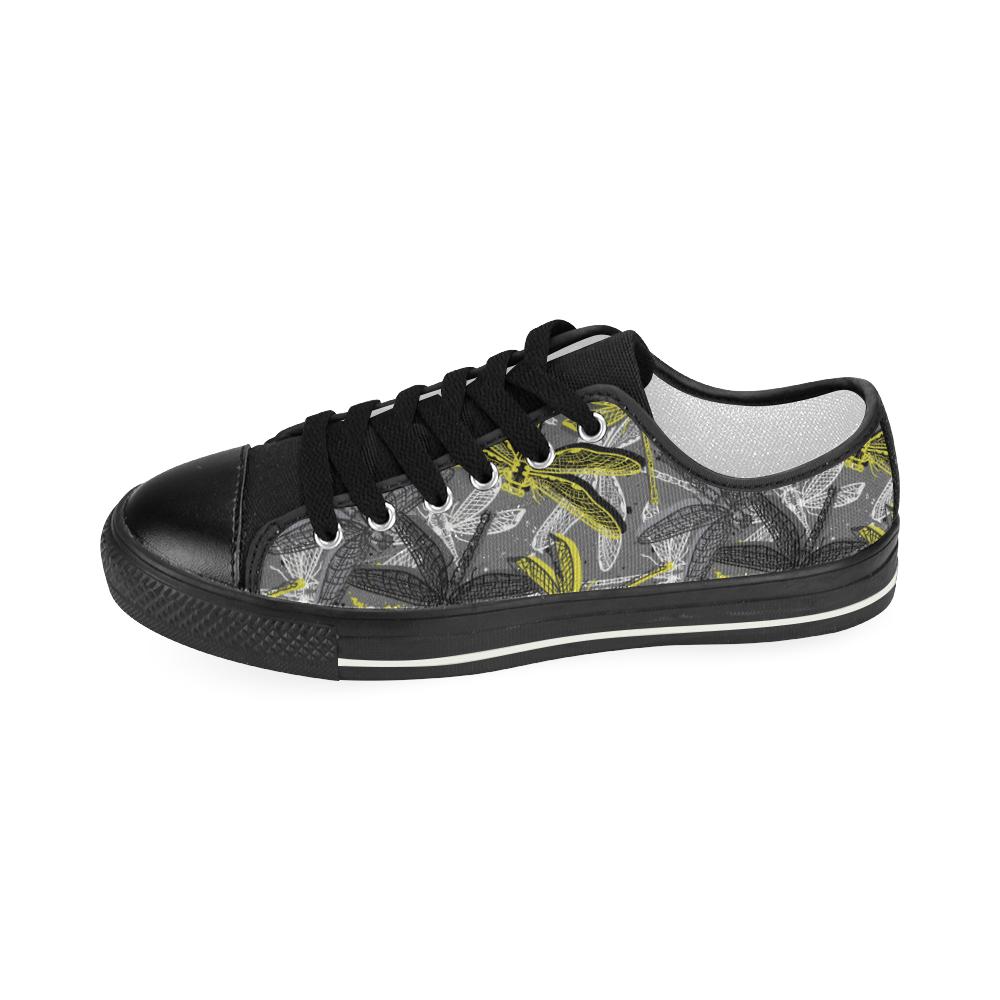 Hand drawn dragonfly pattern Kids' Boys' Girls' Low Top Canvas Shoes Black