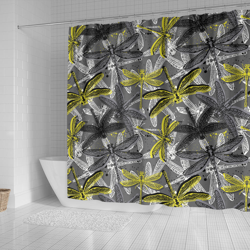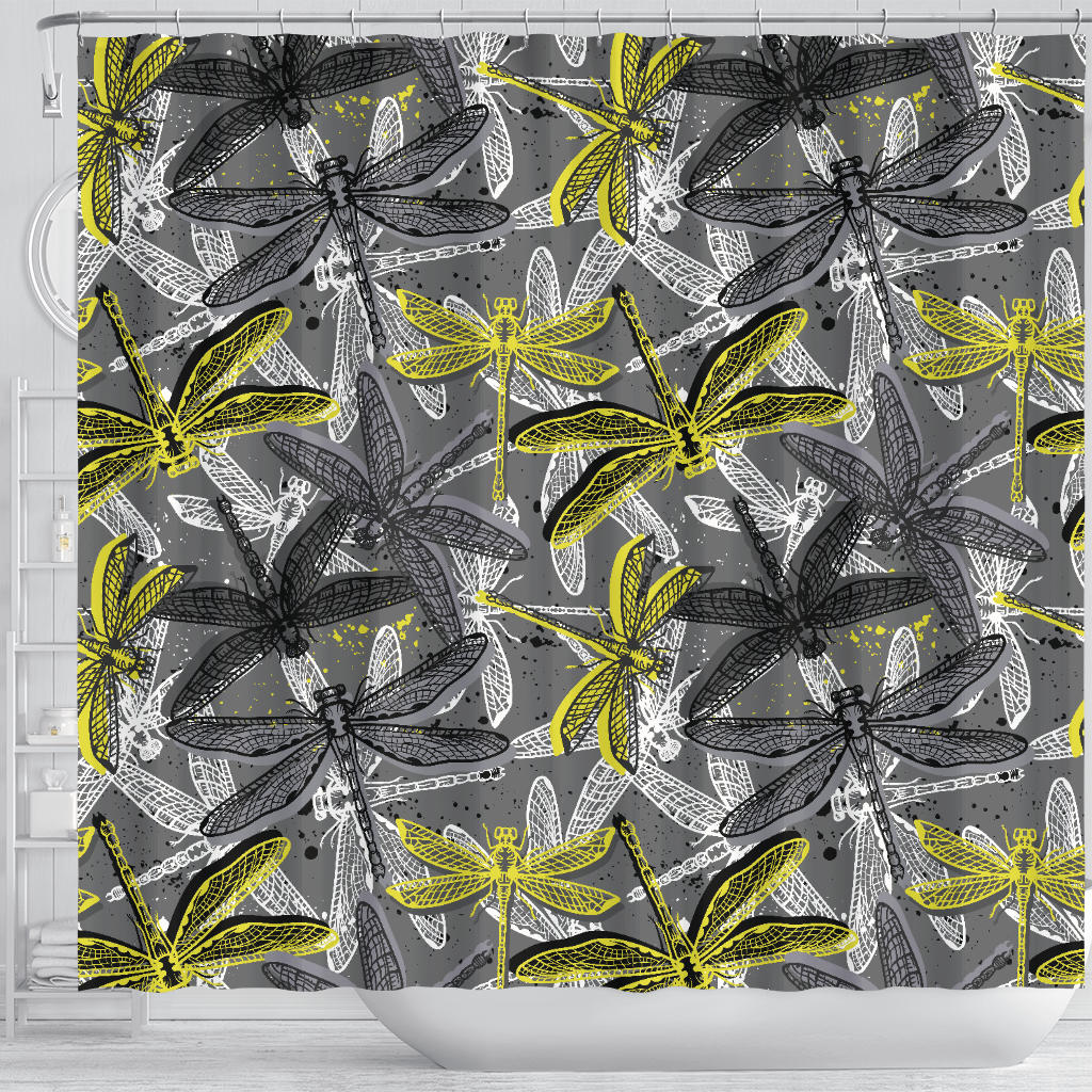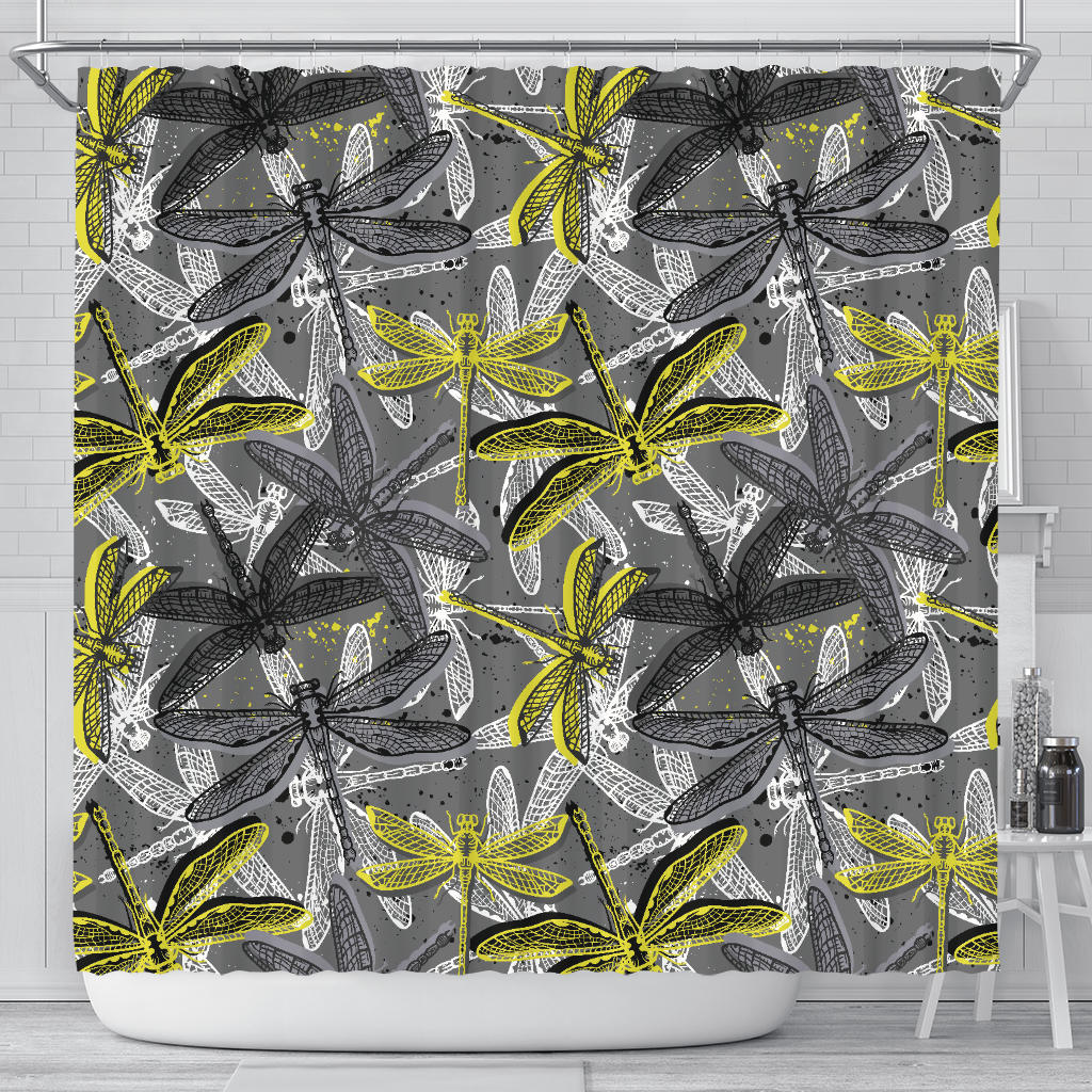 Hand Drawn Dragonfly Pattern Shower Curtain Fulfilled In US