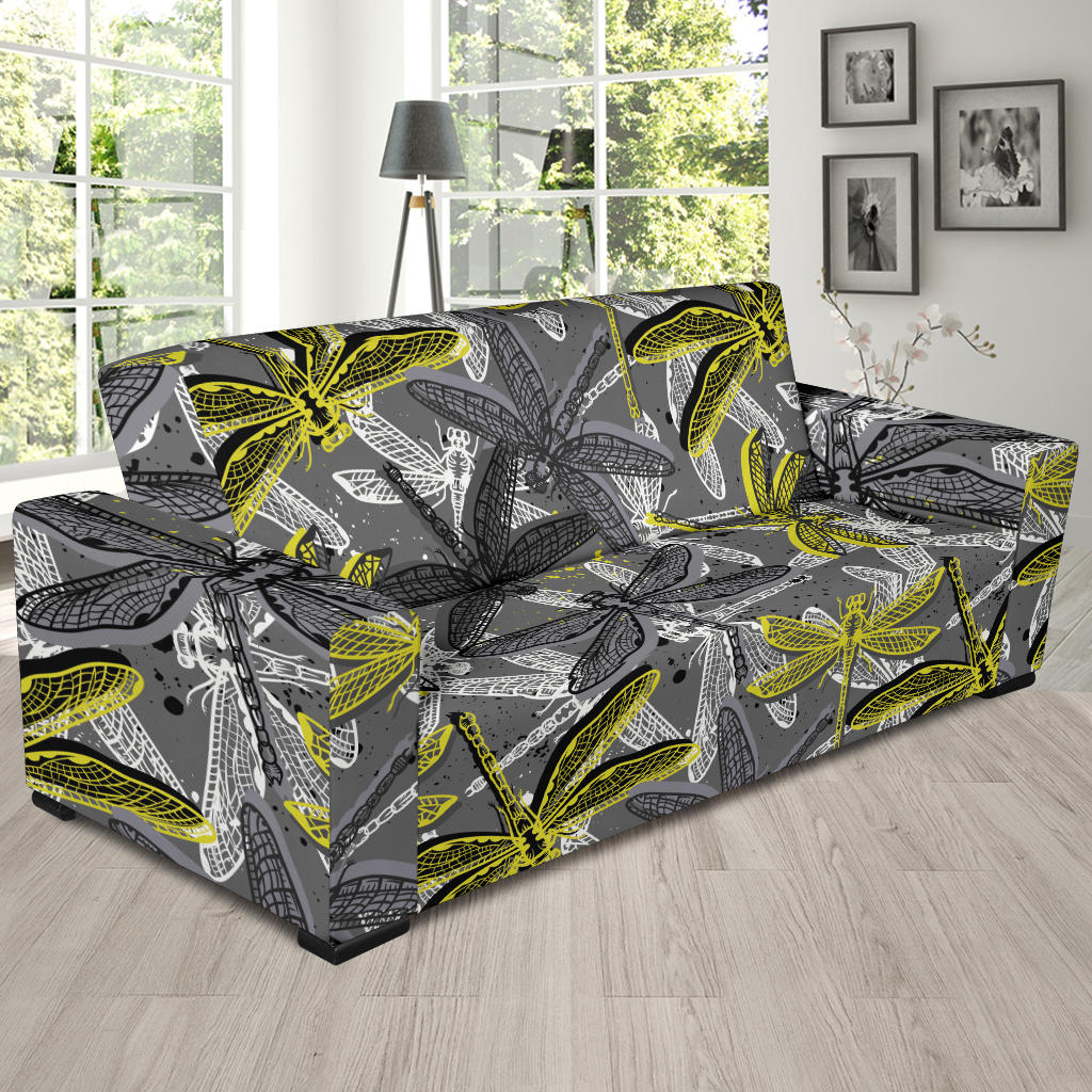 Hand Drawn Dragonfly Pattern Sofa Slipcover