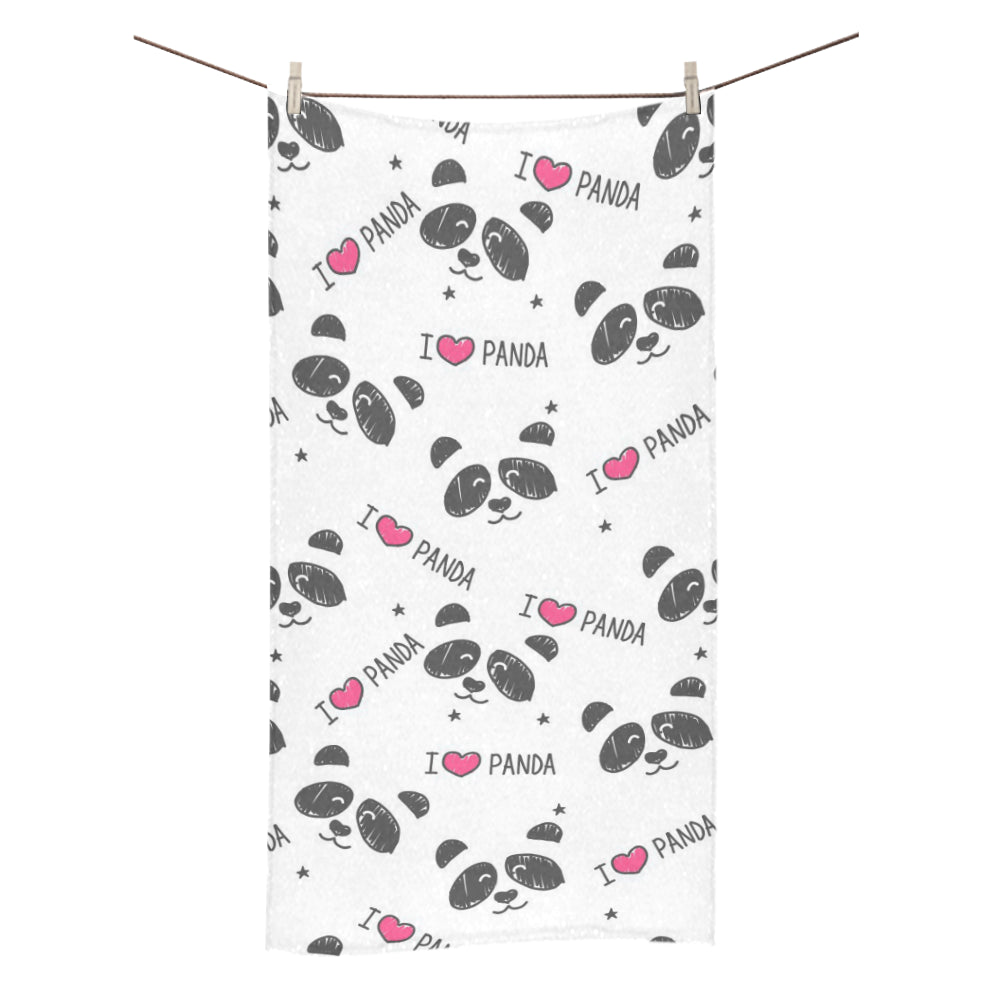 Hand Drawn faces of pandas pattern Bath Towel 30"x56" is a uniqued design and limited item. It made to order, hand printed, and sewn with love in our factory.
