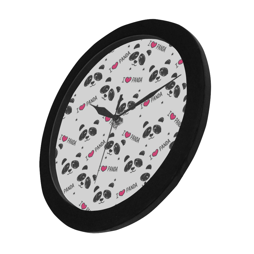 Hand Drawn faces of pandas pattern Elegant Black Wall Clock