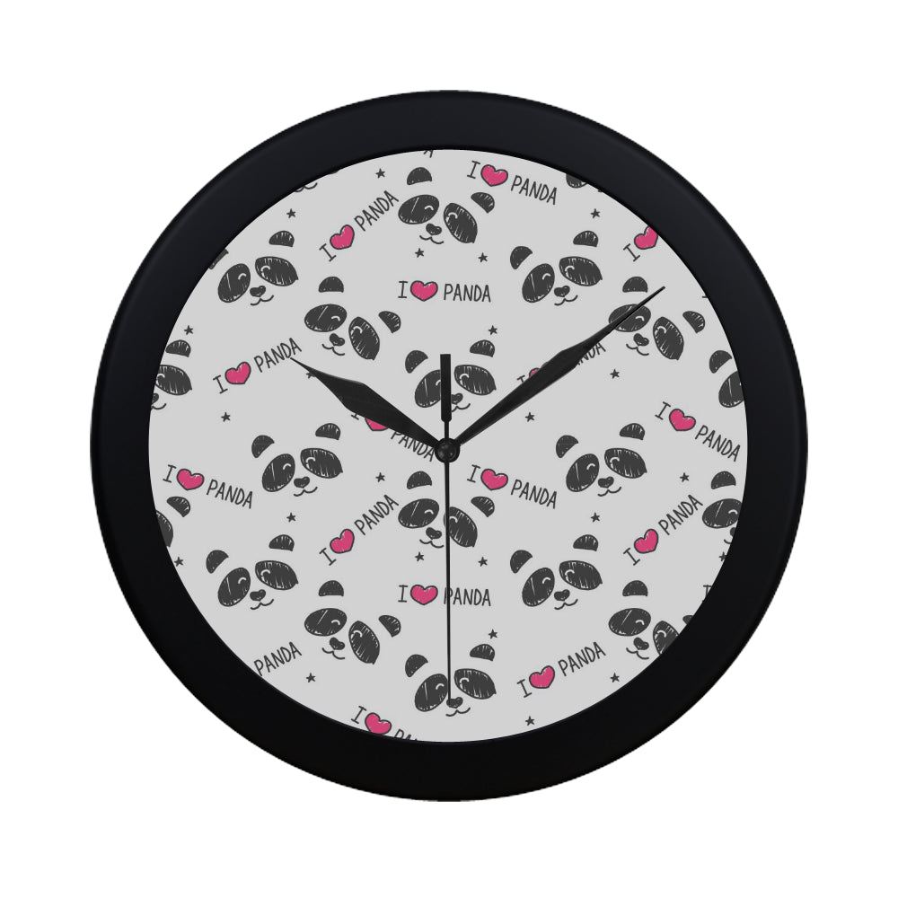 Hand Drawn faces of pandas pattern Elegant Black Wall Clock is a uniqued design and limited item. It made to order, hand printed, and sewn with love in our factory.